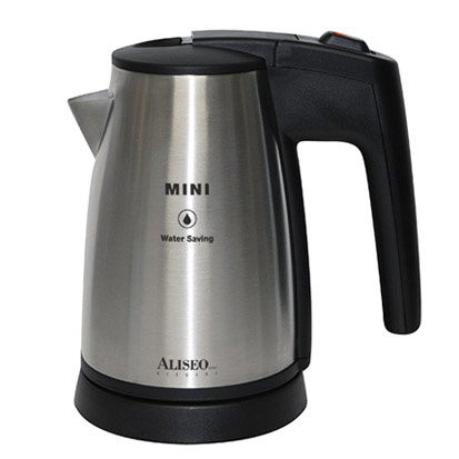 Aliseo Mini Wasserkocher - gebürstetes Chrom/schwarz, 500 ml, CH-Stecker