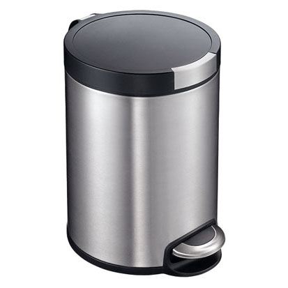 Aliseo Prestige Hygieneeimer - gebürstetes Chrom / Deckel schwarz, 5 Liter