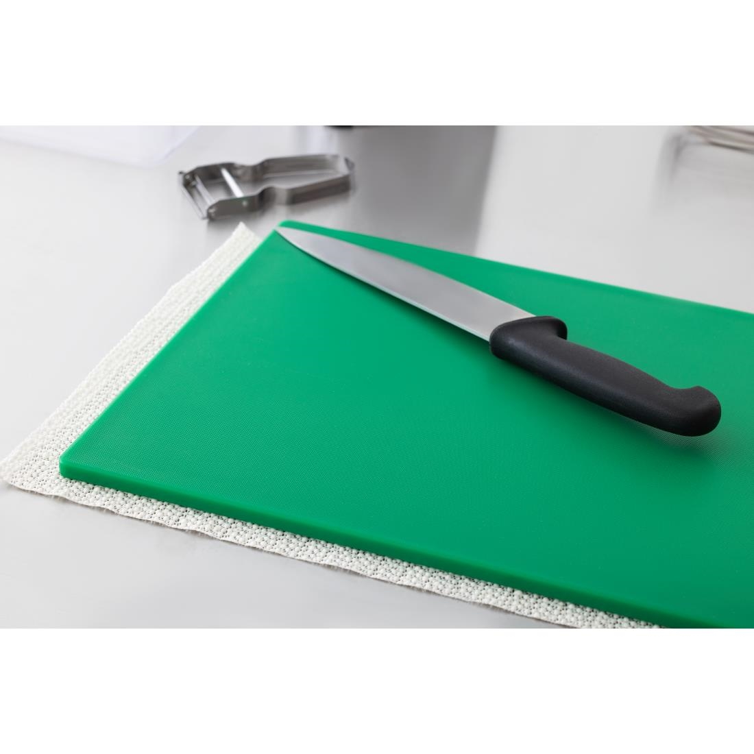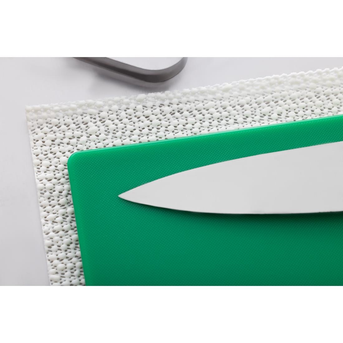 Auf Maß zu schneidende Matte, ideal für den Einsatz unter allen Kunststoffschneidebrettern oder Ablageflächen. Verhindert das Verschieben von Schneidbretter ohne die Benutzung der "nassen Handtuch"-Methode für sichere Lebensmittelvorbereitung. Nicht porös und absorbierend.