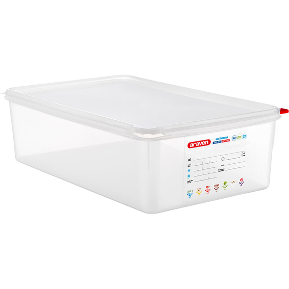 ARAVEN Gastronormbehälter mit Deckel, Polypropylen, GN 1/1 (150 mm)