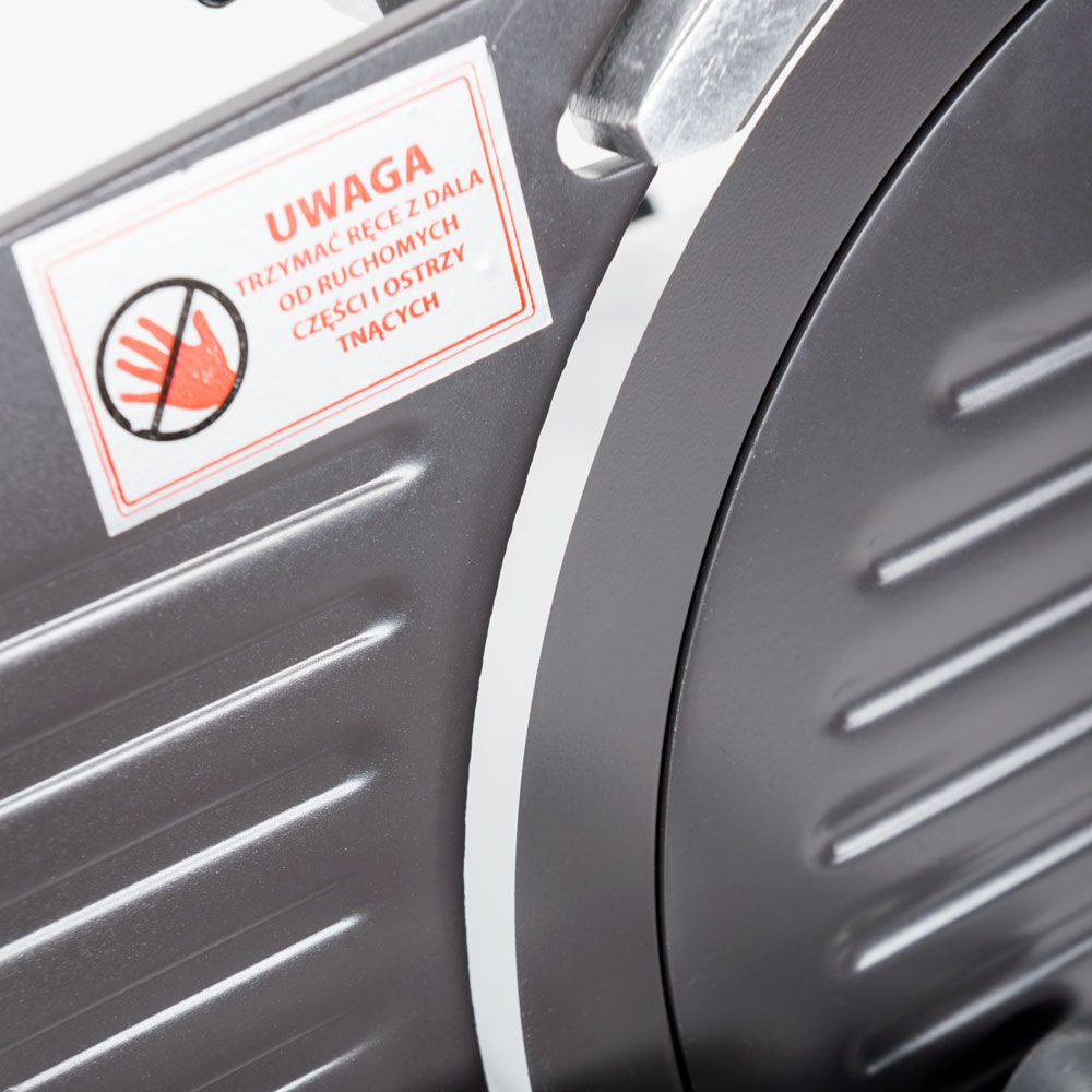 Die Aufschnittmaschine aus eloxiertem Aluminium ist hochwertig und sorgfältig verarbeitet für eine lange Lebensdauer. Damit schneiden Sie problemlos verschiedene, nicht gefrorene Produkte in bis zu 12 mm dicke, präzise Scheiben.Das Schneidegut wird auf dem Schneideteller mit Hilfe des Restehalters in Position gehalten. Der Schlitten ist sehr leichtgängig und mit einem Handschutz aus Plexiglas ausgestattet. Die gerillte Oberfläche am Schneidegutanschlag und der Messerabdeckung ist antihaftbeschichtet damit keine Produkte kleben bleiben. Zeitgleich ist die Führung besonders einfach und widerstandslos für ein sicheres Arbeiten ohne viel Kraftaufwand.Die Reinigung ist schnell erledigt. Nach dem Lösen der Befestigungsschrauben können Sie die zu reinigenden Einzelteile abnehmen, säubern und fix wieder einbauen.Sollte das Messer stumpf werden, schärfen Sie es mit Hilfe des integrierten Messerschärfers in kürzester Zeit im richtigen Winkel. Lösen Sie die Verschraubung und drehen den Schleifstein um 180°. Nach dem Arretieren schalten Sie die Maschine für ca. 1-2 Minuten ein, Schleifstein lösen und zurückdrehen –fertig!