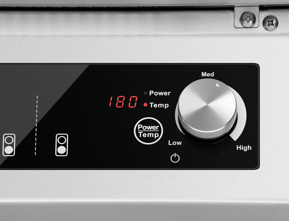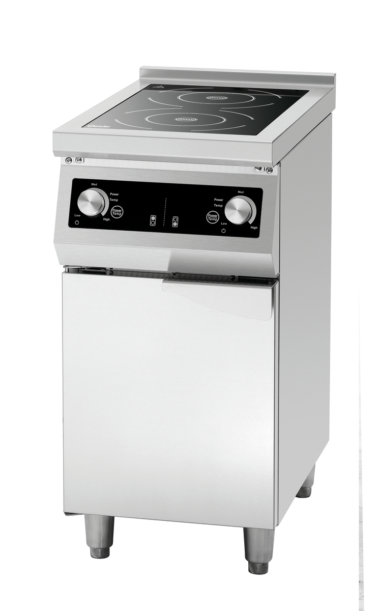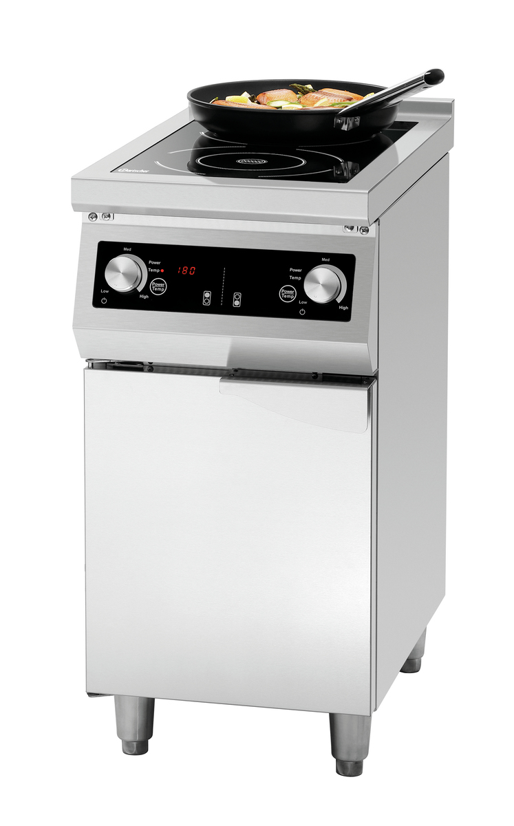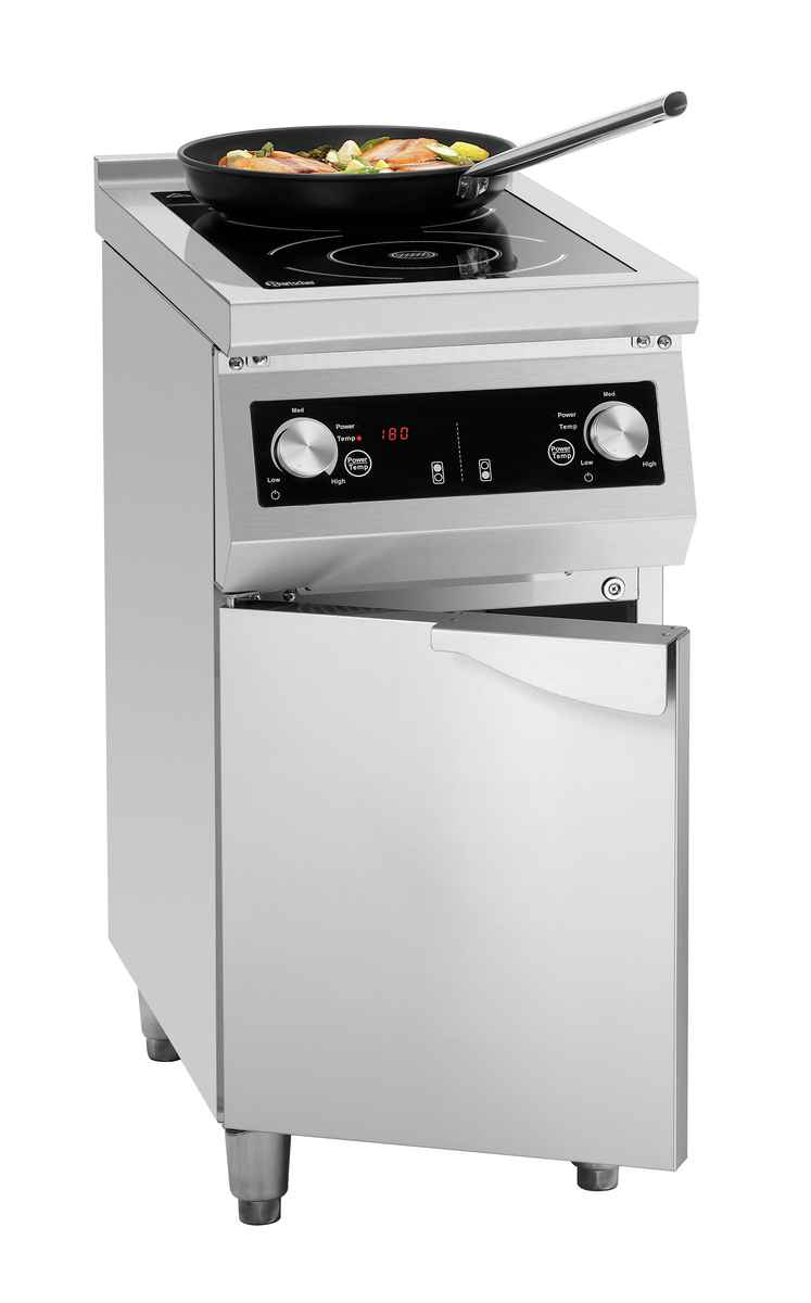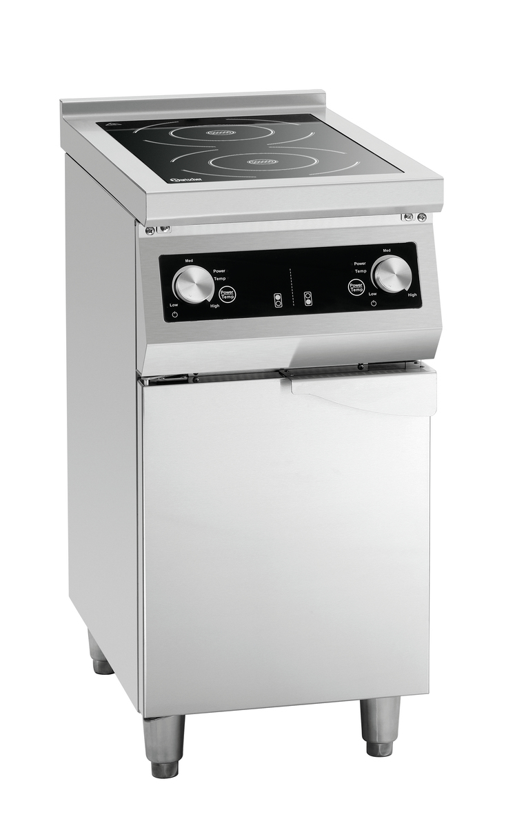 Mit dem 2-Felder Induktionsherd GU hat man einen platzsparenden und zuverlässigen Partner in der Küche. Das Glaskochfeld bietet ausreichend Platz zum Arbeiten und die 8,5 kW Gesamtleistung können entweder über Leistungsstufen oder Temperatur gesteuert werden. Der durch eine Flügeltür geschlossene Unterbau bietet Platz für Töpfe und Pfannen.