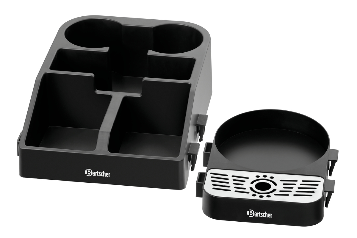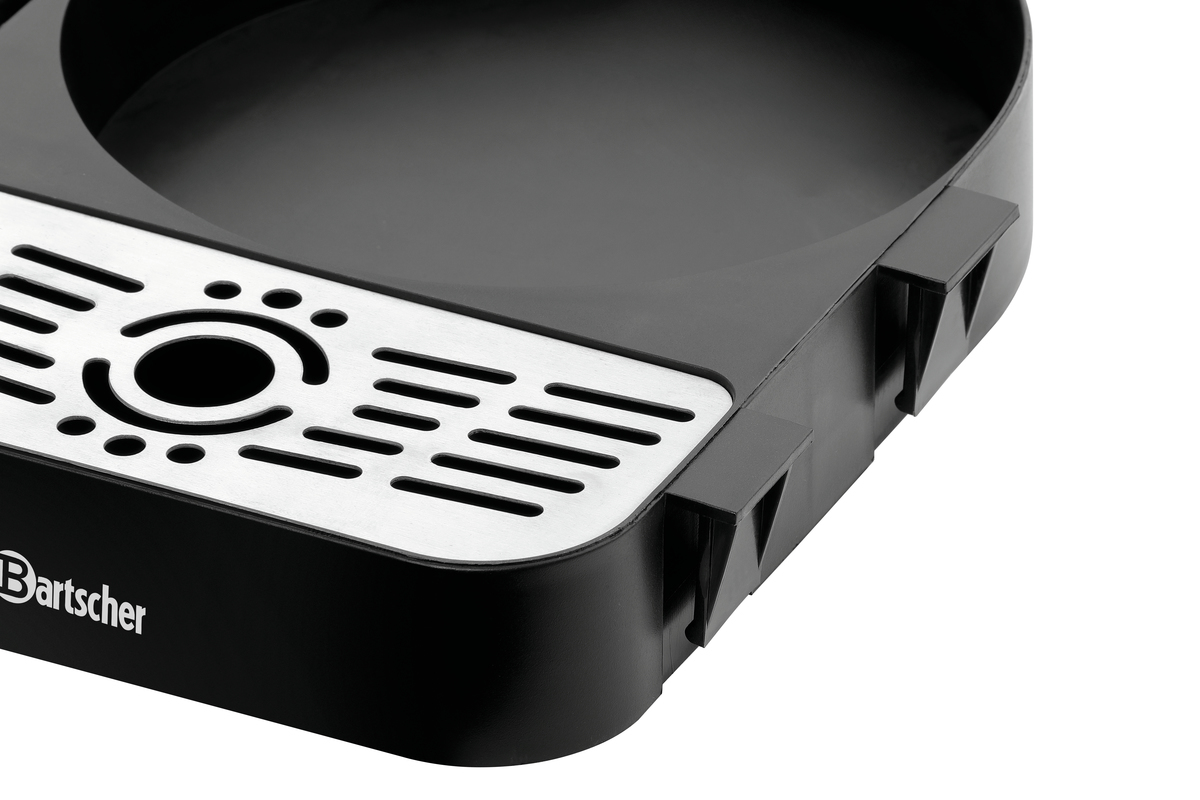 - Auffangbehälter: Abtropfgitter abnehmbar