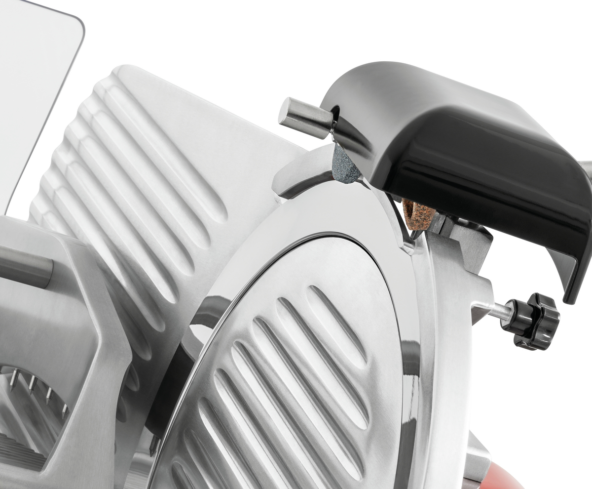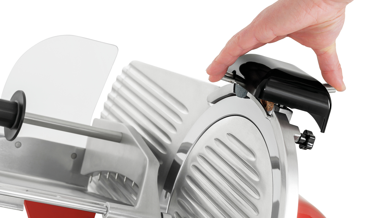 Auch in der Gastronomie und im Lebensmittelbereich dürfen Statements gesetzt werden. Die rote Aufschnittmaschine überzeugt durch Design und ihren technischen Features. Das 300er Messer verarbeitet in Verbindung mit dem leistungsstarken Schrägschneider jegliche Art von Wurst zu einem sauber und gleichmäßig geschnittenen Aufschnitt.