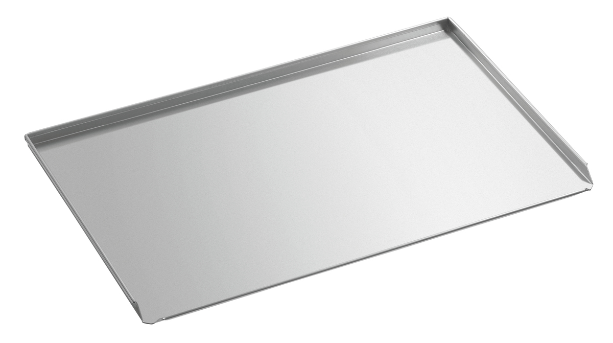 Das Backblech aus Aluminium im Bäckereinorm-Format 600x400 ist temperaturbeständig bis 260 °C. Der 3-seitige Rand ermöglicht ein sicheres Backen und Transportieren.