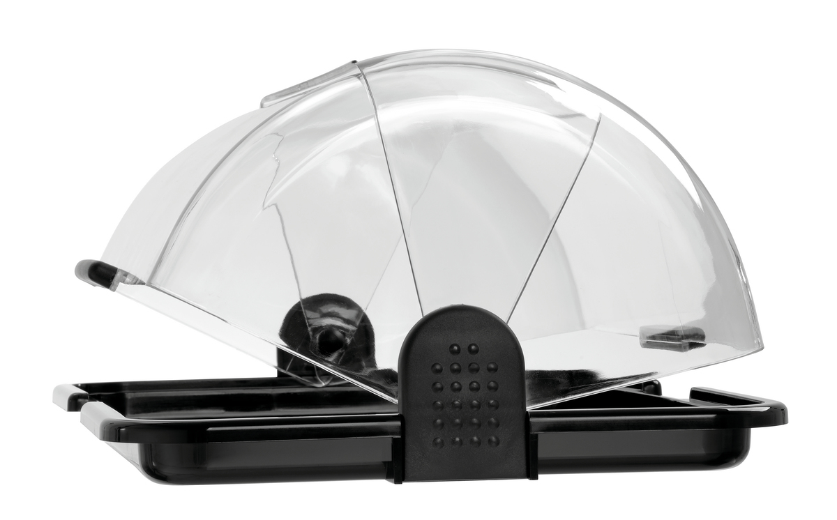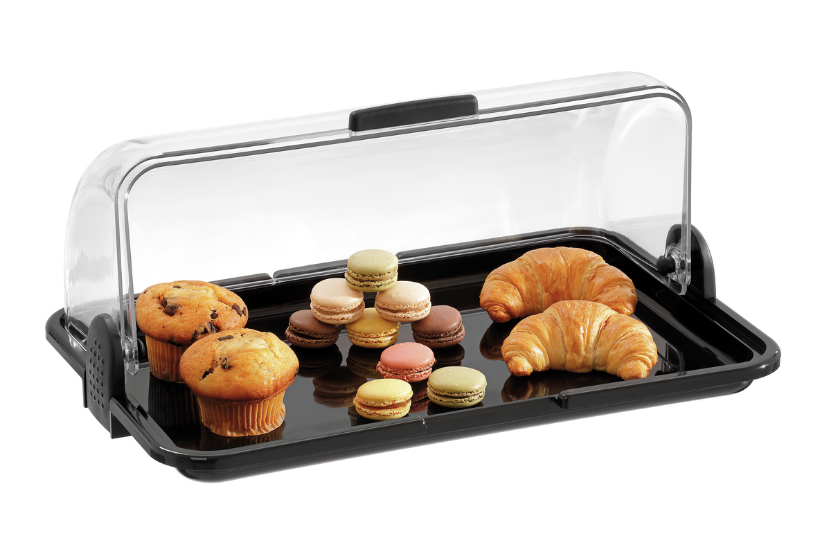 Die Buffetvitrine hält Speisen ohne Kühlung hygienisch frisch und lässt sich ganz nach Bedarf am Buffet platzieren. Der transparente Rolltop-Deckel bietet sowohl eine beidseitige Bedienung als auch eine direkte Sicht auf die präsentierten Köstlichkeiten.