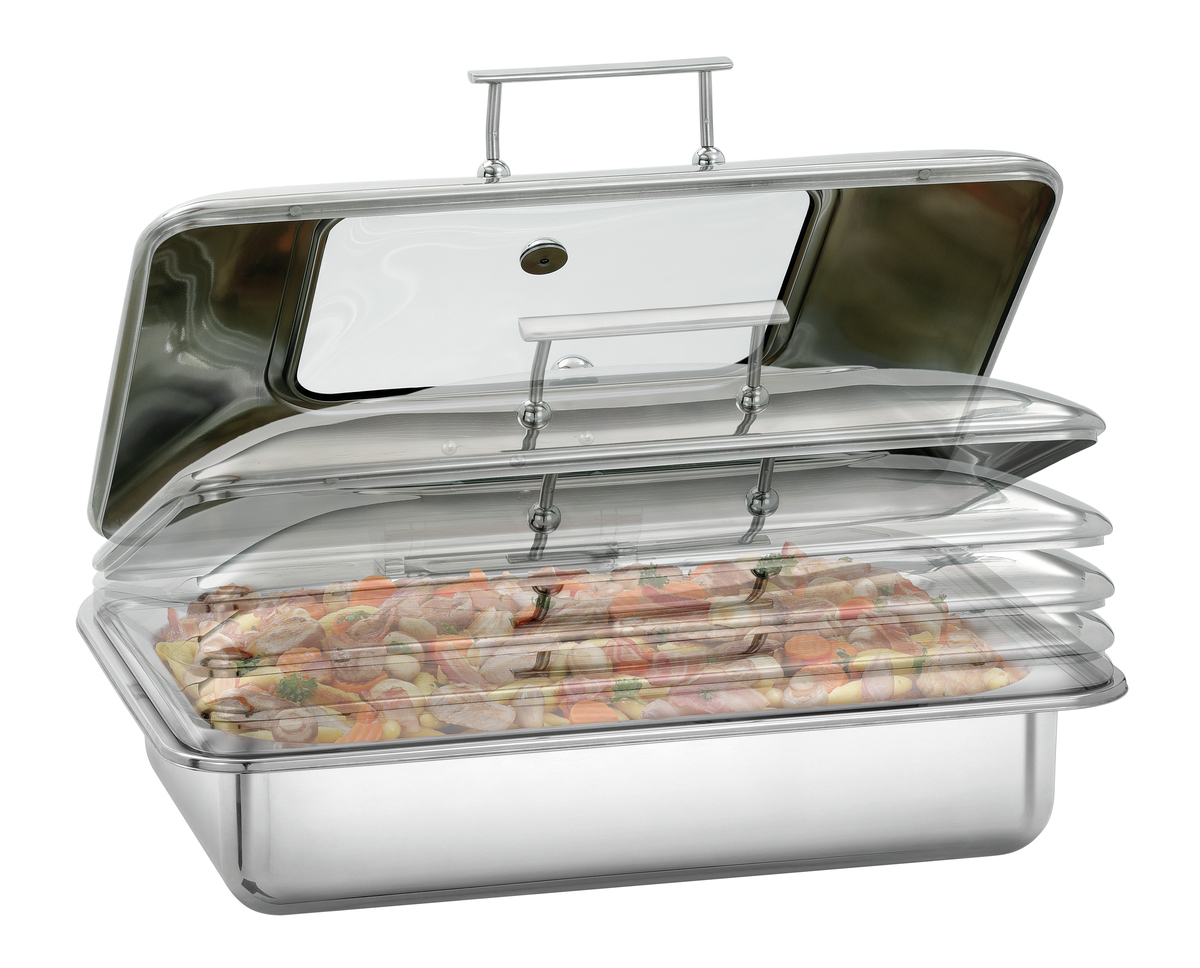 Die Nutzung dieses Chafing-Dishs in Kombination mit einem Induktions- oder Glaskeramikkochfeld bietet unbegrenzte Möglichkeiten. So kann die Temperatur im Chafing-Dish über das externe Kochfeld reguliert werden.