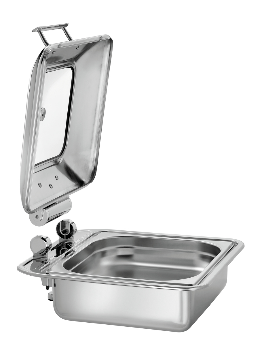 Ob Induktion oder Glaskeramik - Chafing Dish im 2/3 GN-Format für eine flexible Nutzung auf einem Einbaukochfeld. Der abnehmbare Deckel erleichtert den Austausch des GN-Behälters an Buffets, in Kantinen oder im Frontcooking-Bereich.