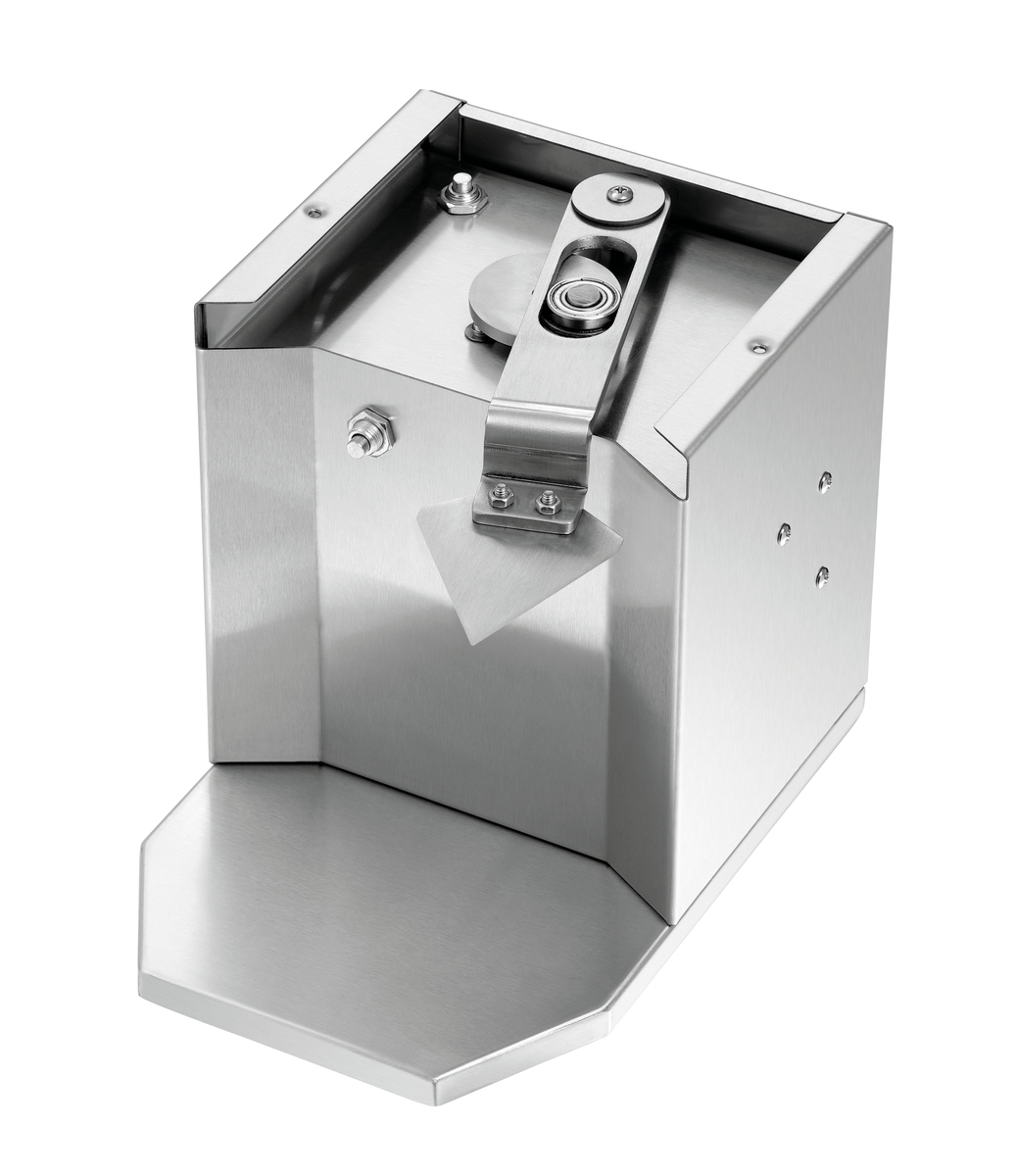 Elektrischer Currywurstschneider mit praktischem Dreiecksmesser und abnehmbaren Trichter für mehr Hygiene. Die Scheibenstärke lässt sich stufenlos regulieren.