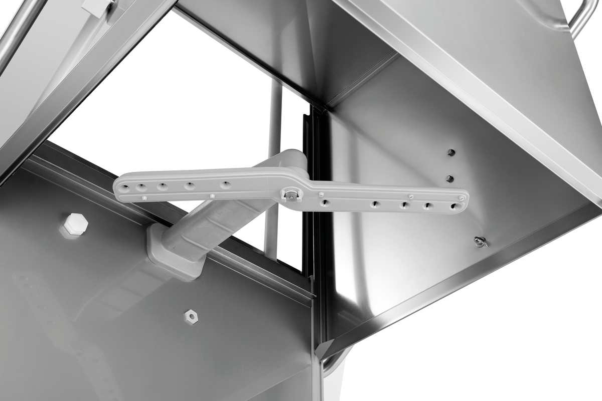 Erhöhte Pumpenleistung, geringer Druckverlust und ruhiger Lauf - Die überzeugenden Argumente der eingebauten DuoFlo-Pumpe. In Kombination mit der extra großen Einschubhöhe ist die Hauben-Spülmaschine der ideale Arbeitshelfer in jeder Spülküche.