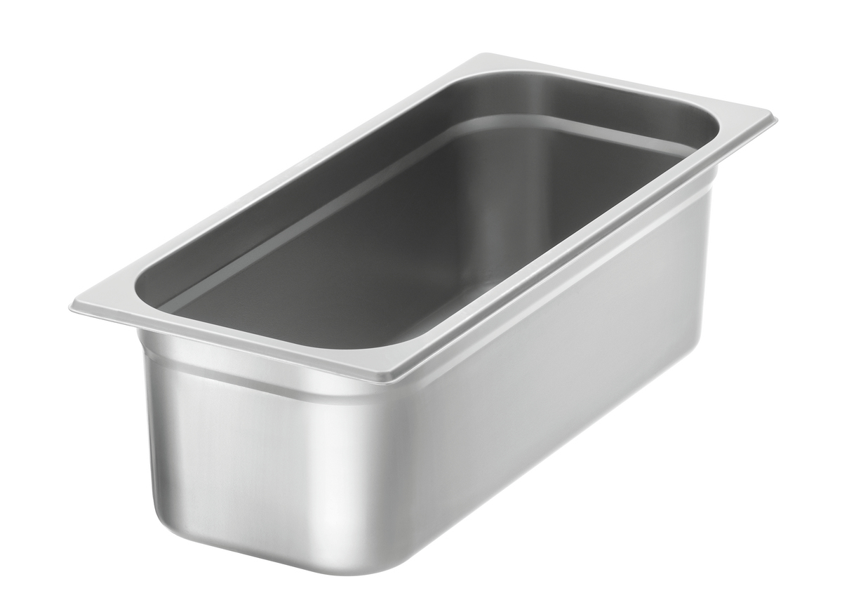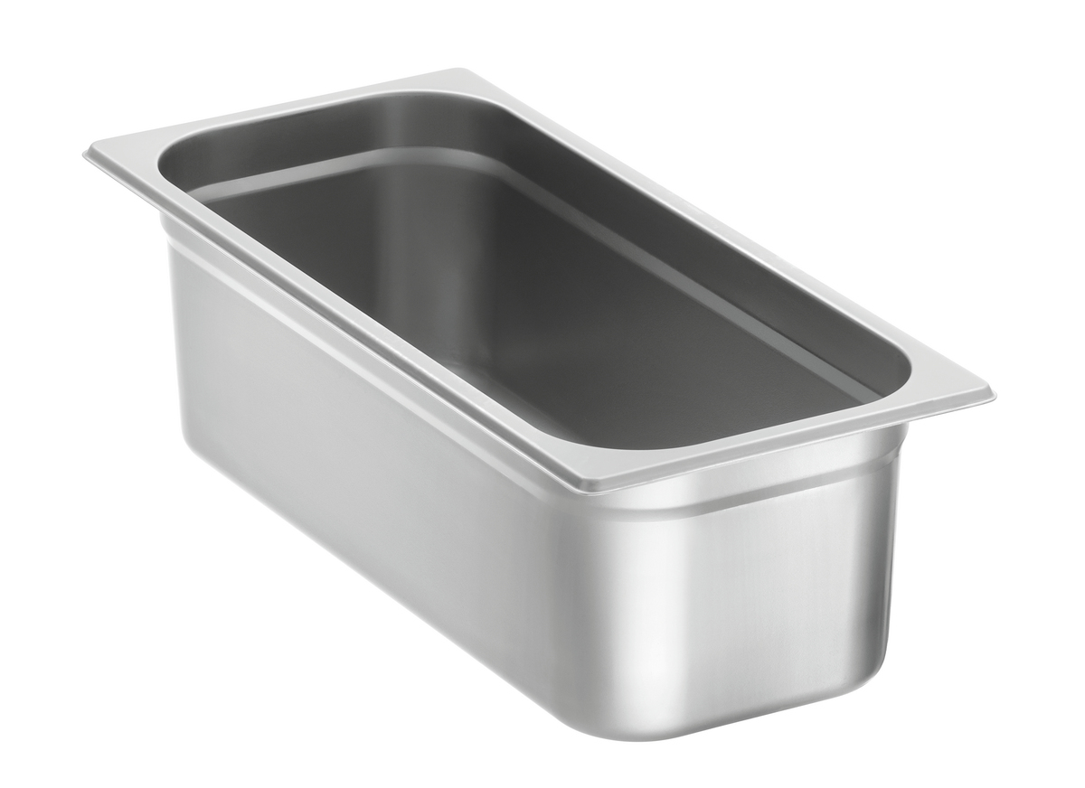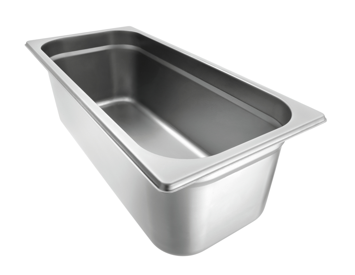 Eine ganz coole Sache: Der Eisbehälter fasst bis zu 5 Liter Speiseeis. So können Eisspezialitäten nach der Produktion direkt in den Behälter gefüllt und bei Bedarf kurzfristig in den Eisvitrinen ausgetauscht werden. Dank der robusten Edelstahl-Ausführung ist der Behälter bedenkenlos spülmaschinengeeignet.