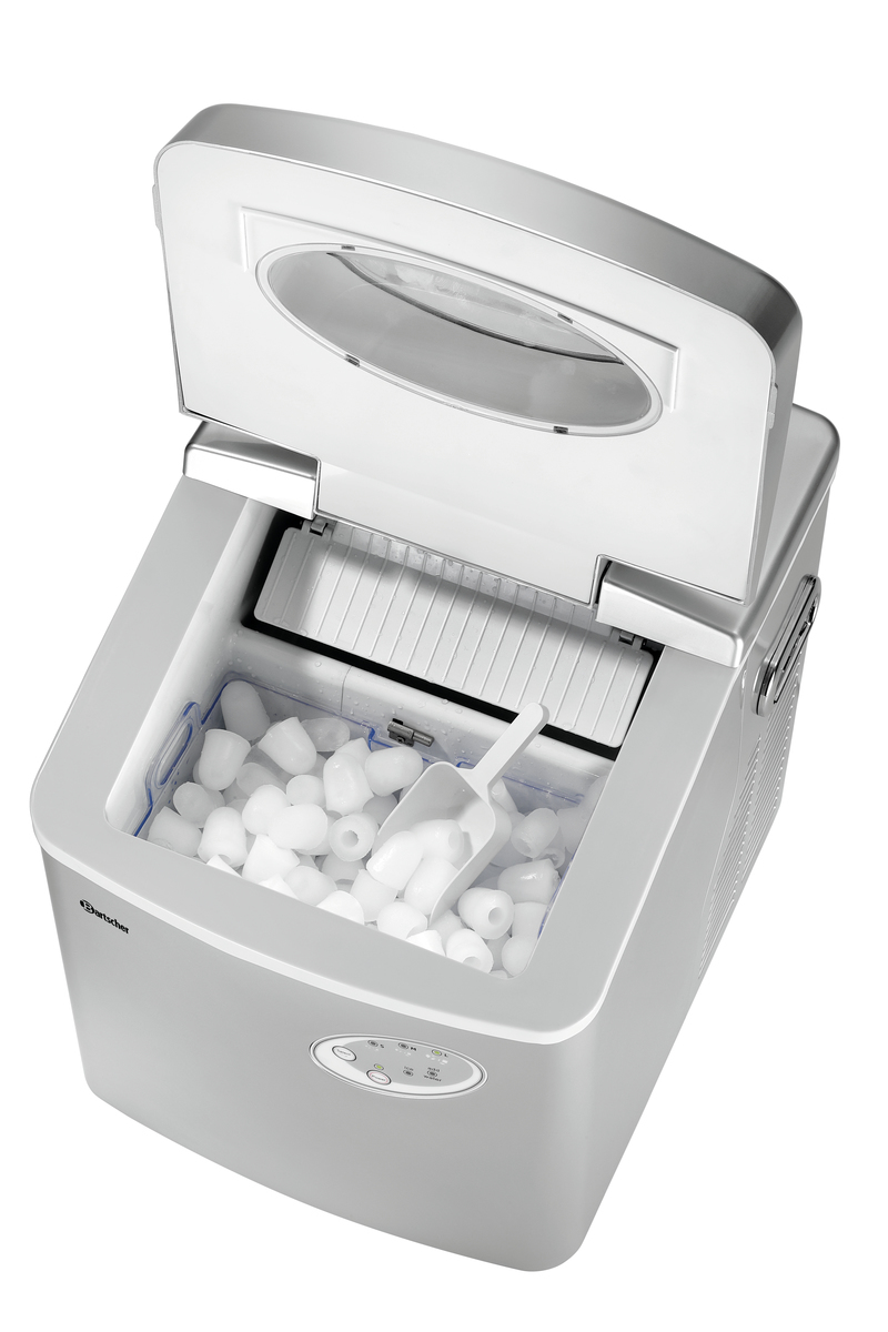 Mit dem Eiswürfelbereiter können Hohlkegel in 3 verschiedenen Größen bedarfsgerecht produziert werden. Dank des integrierten Wassertanks und der kompakten Ausführung ist das Gerät hervorragend für den Thekenbereich geeignet.