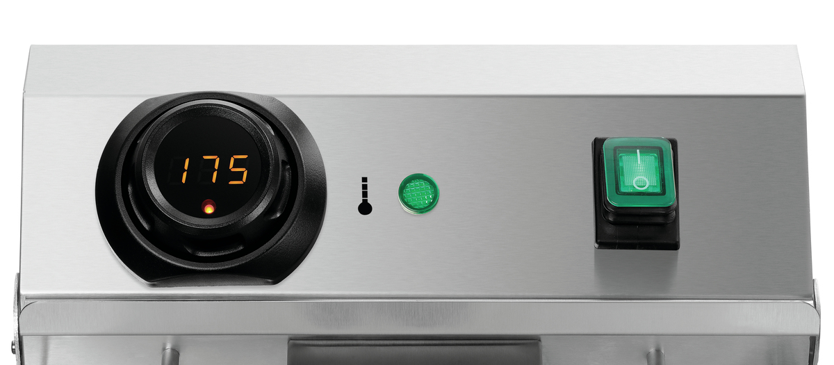 Richtiges Frittieren leicht gemacht: Mit dem digitalen Bartscher MDI-Knebel lässt sich die Temperatur gradgenau einstellen. Zudem ist jederzeit eine Kontrolle der aktuellen öl-Temperatur möglich.