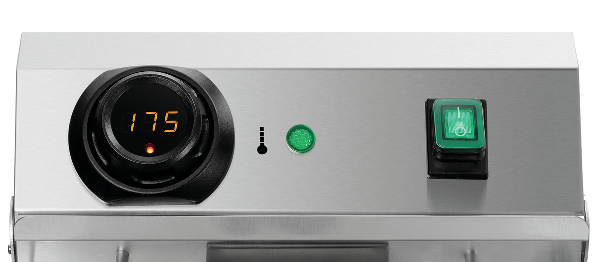 Richtiges Frittieren leicht gemacht: Mit dem digitalen Bartscher MDI-Knebel lässt sich die Temperatur gradgenau einstellen. Zudem ist jederzeit eine Kontrolle der aktuellen öl-Temperatur möglich.