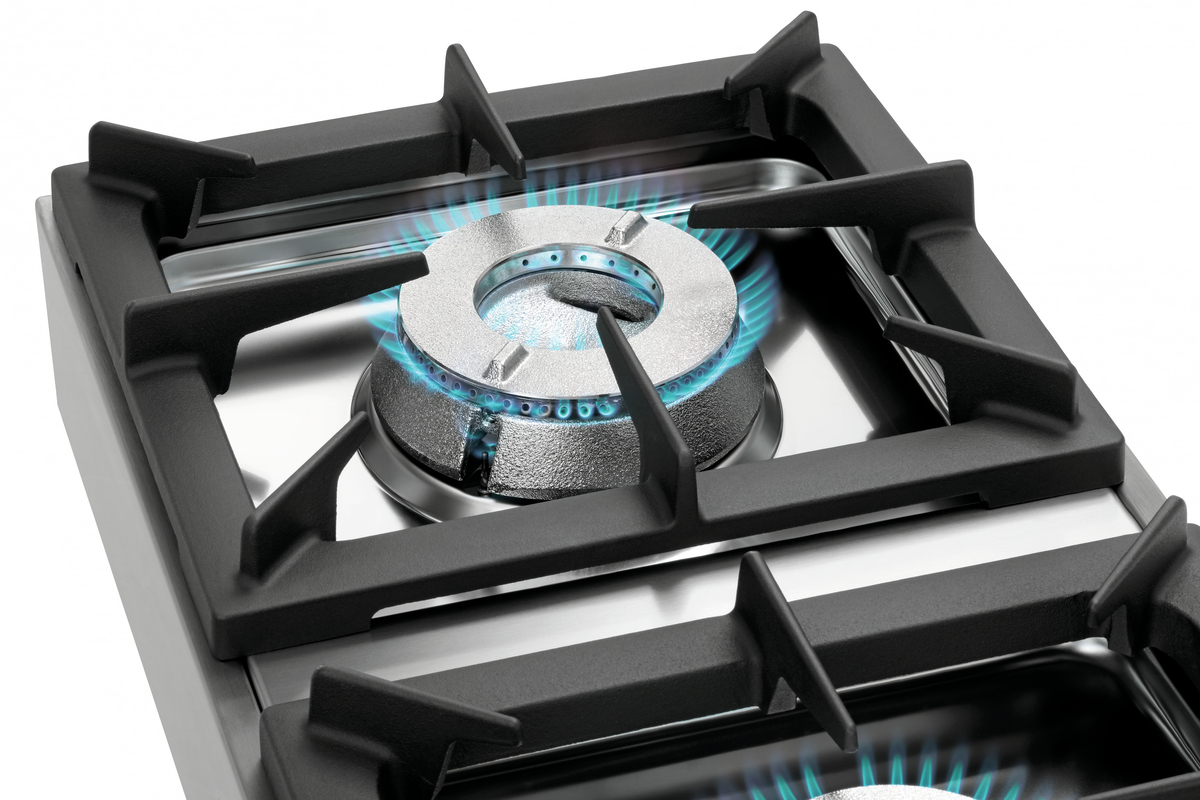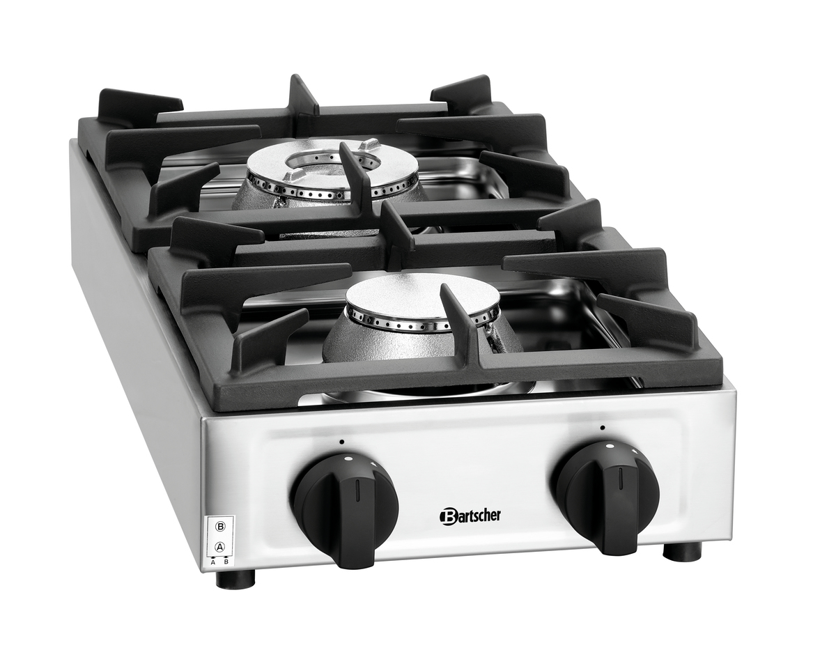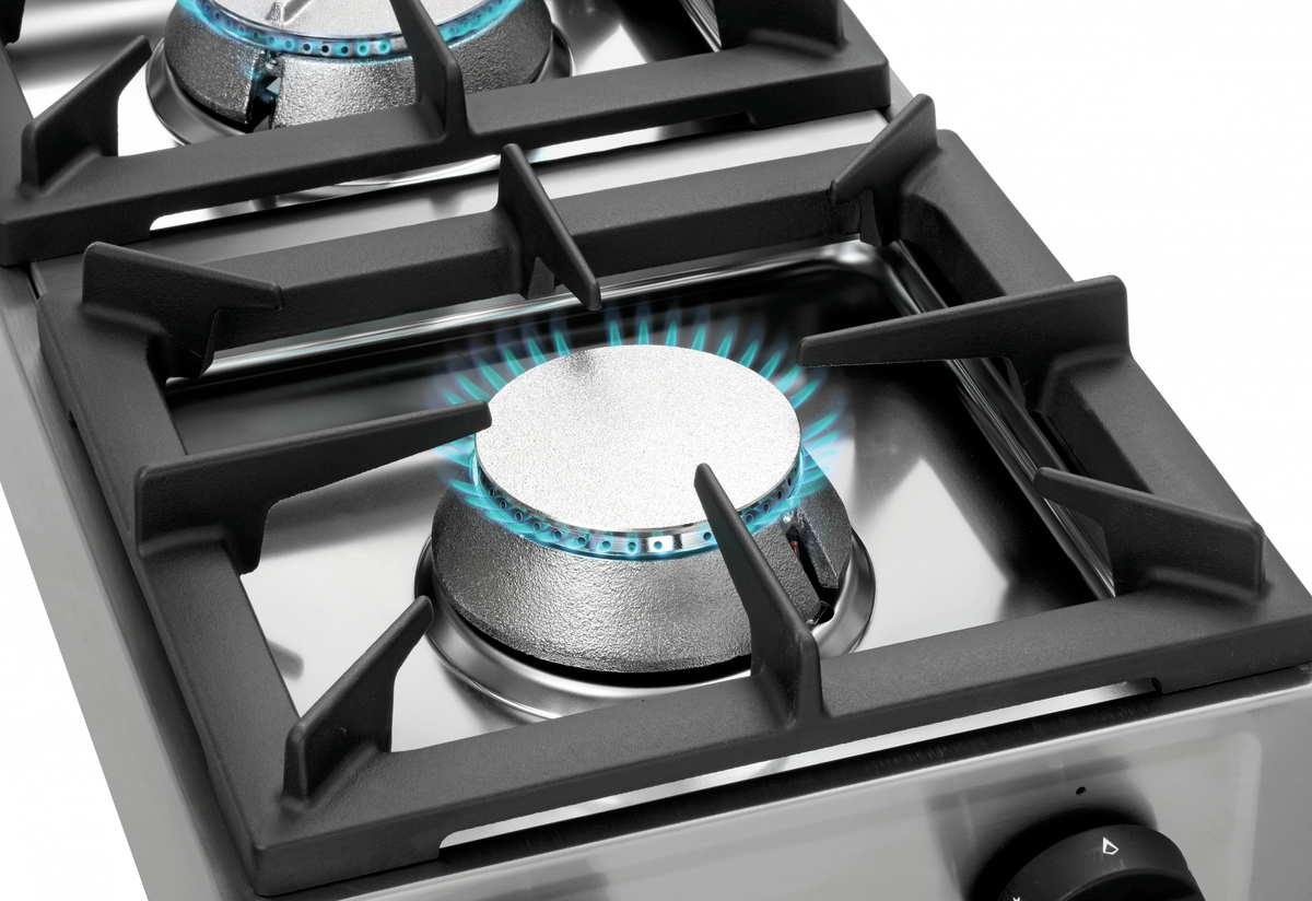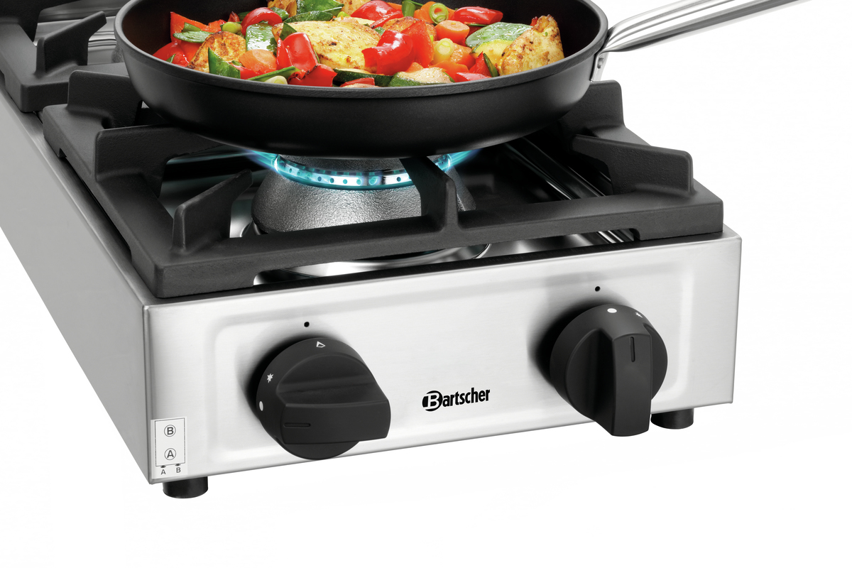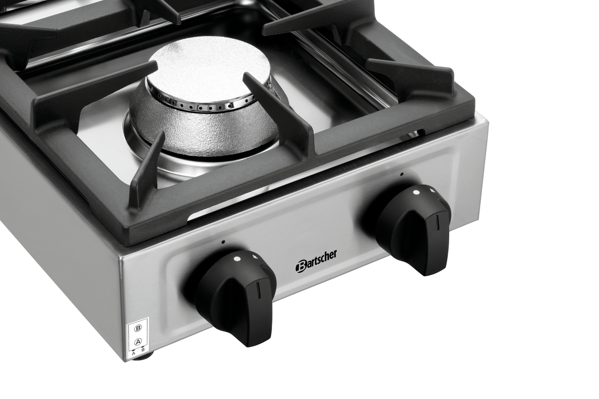 - Gasbrenner: Einkreisbrenner vorne, Zweikreisbrenner hinten