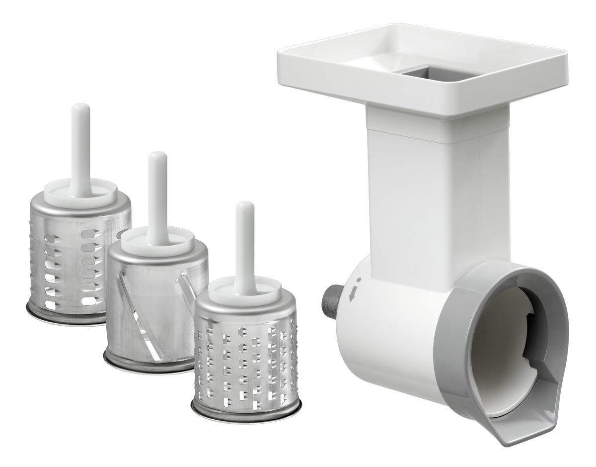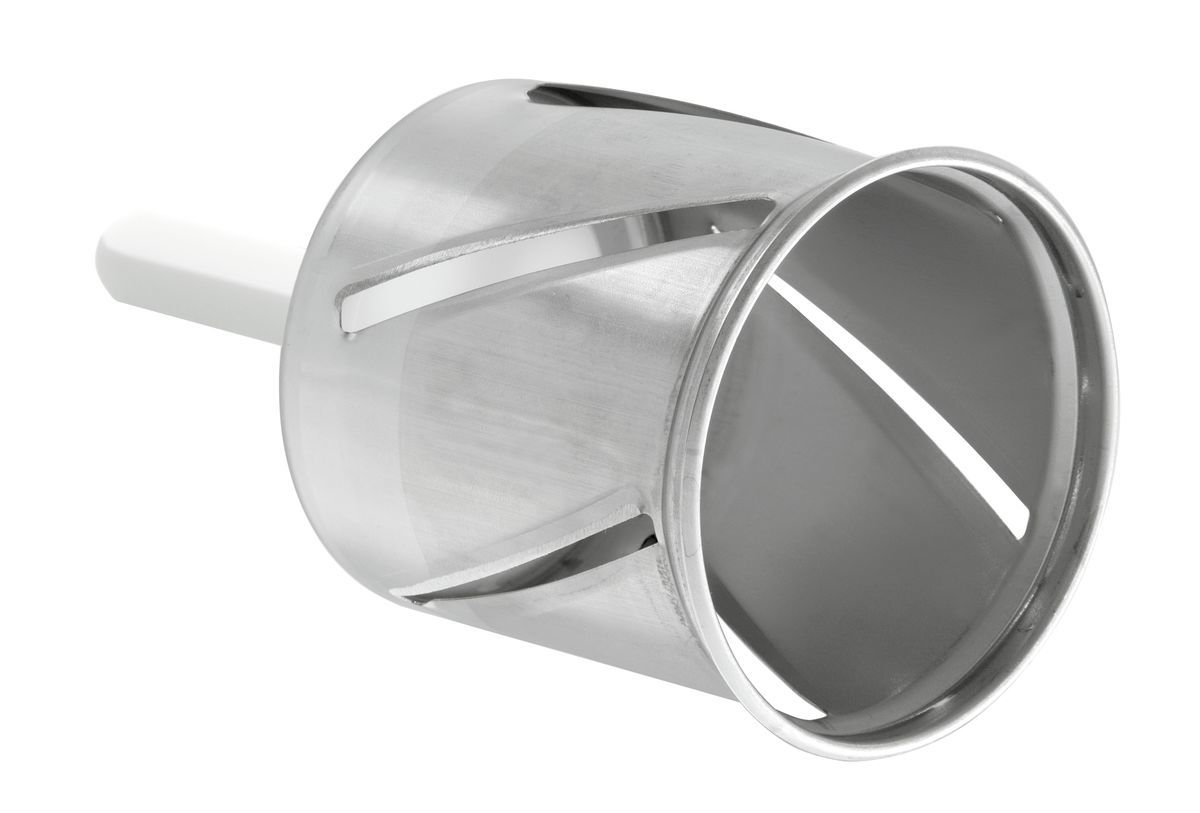 - Set bestehend aus: 1 Birchertrommel (Trommel mit Wellenschliff) ,1 Gemüseschneider ,1 Scheibentrommel