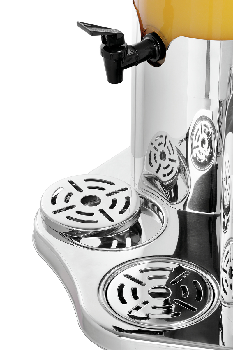 Eiskalte Getränke - Im wahrsten Sinne: über eine Eisröhre werden je Behälter 5 Liter Saft, Wasser & Co. kühl gehalten. Der Dispenser im ansprechenden Design kann so ganz individuell am Buffet oder beim Catering eingesetzt werden.