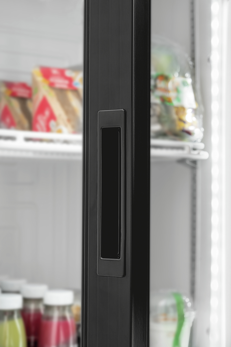 Der Blickfang in jedem Selbstbedienungsbereich: Mit dem beleuchteten Werbedisplay zieht der Glastürenkühlschrank die Aufmerksamkeit auf sich und präsentiert Produkte in bestem Licht.