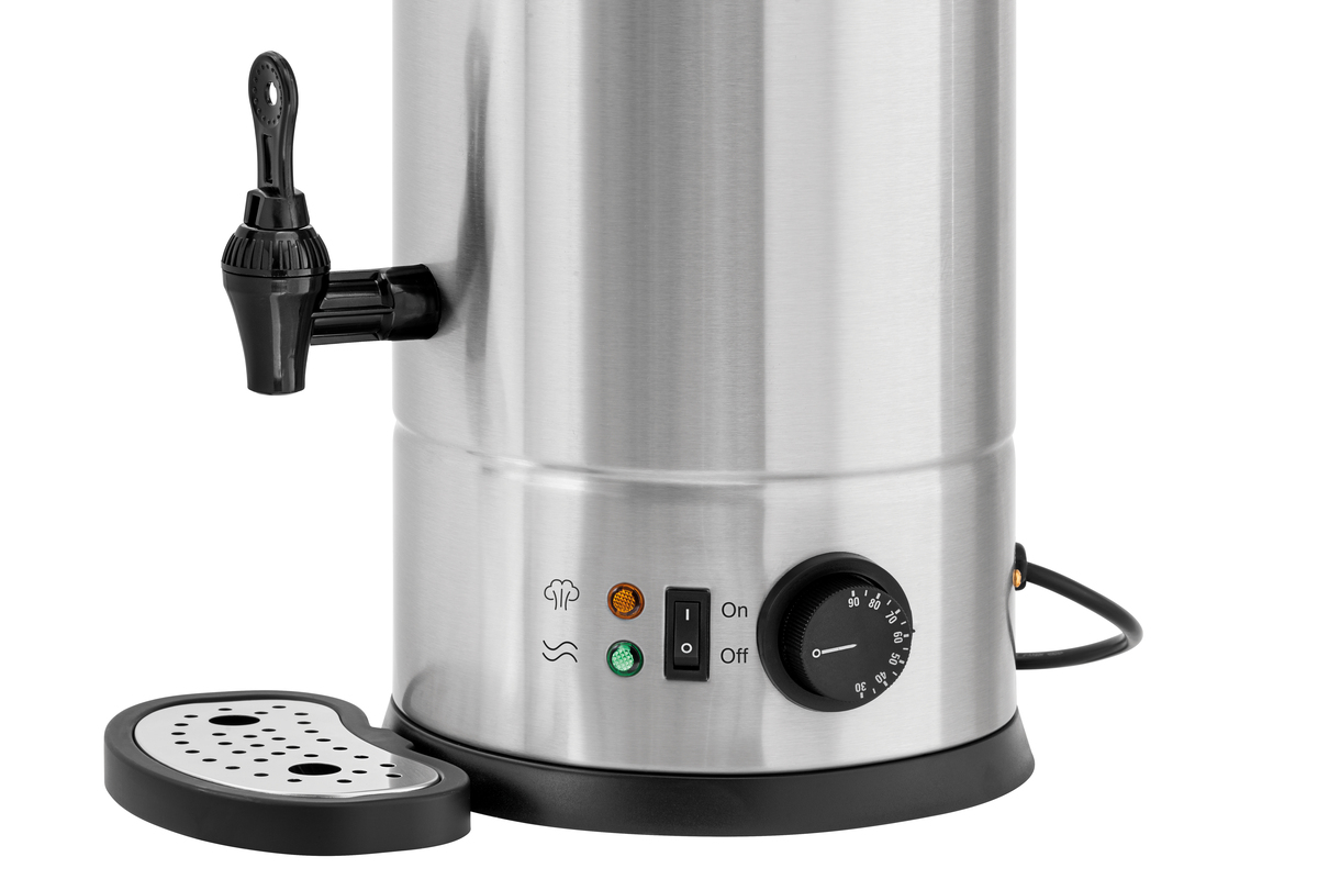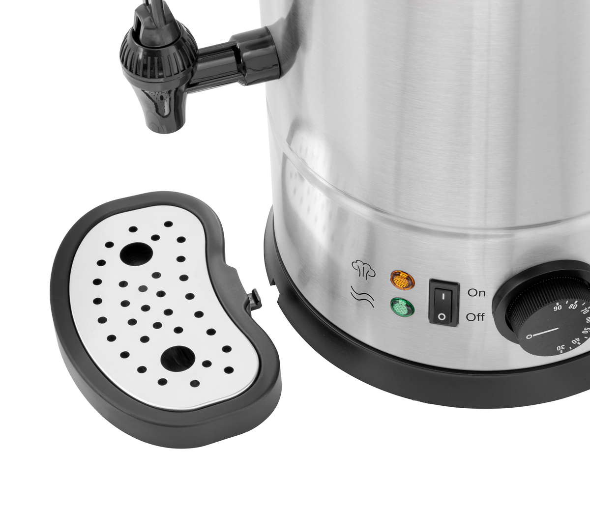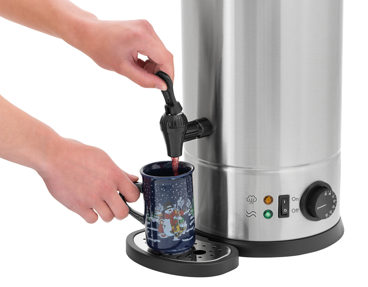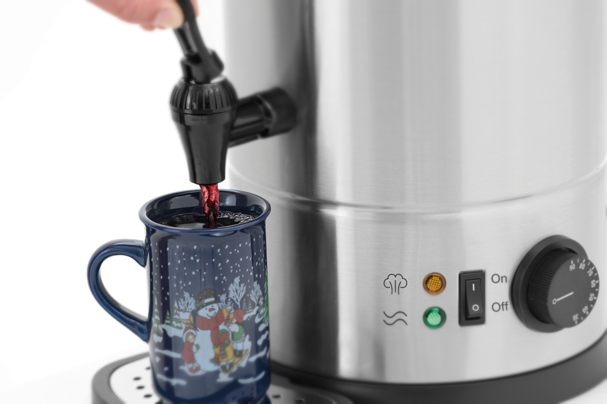 Wohltemperierter Glühwein für die kalte Jahreszeit - dank des doppelwandigen Glühweintopfs lassen sich bis zu 10 Liter Glühwein mühelos und energiesparend auf die gewünschte Temperatur bringen und zuverlässig warmhalten. Der integrierte Ablasshahn sorgt für eine einfache Handhabung und macht den Ausschank besonders komfortabel.