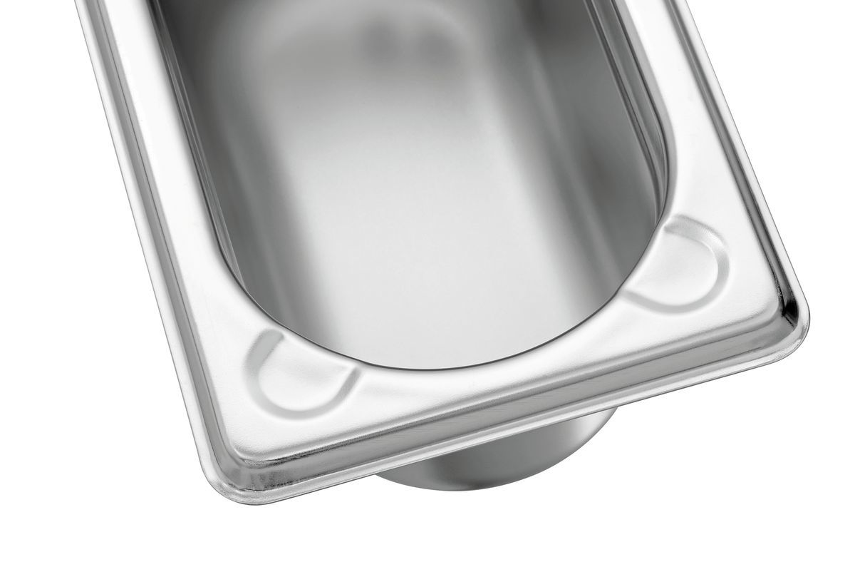 GN-Behälter nach EN 631 aus rostfreiem Chromnickelstahl mit seidenmatter Oberfläche