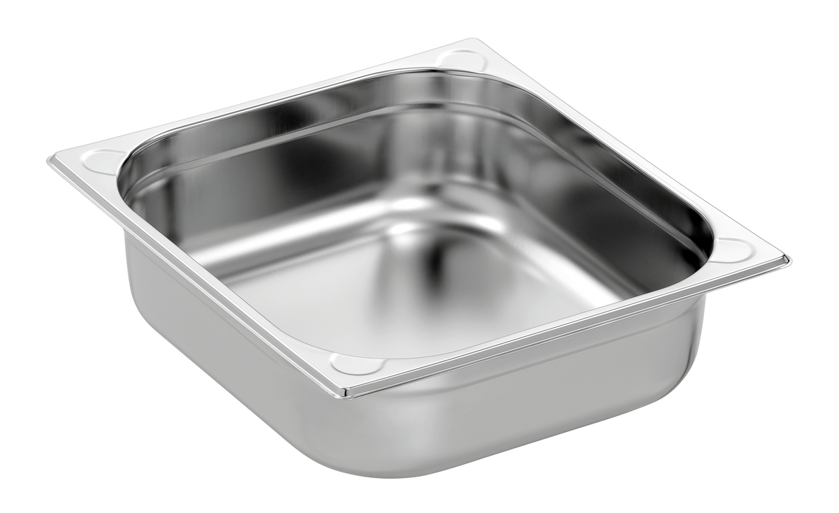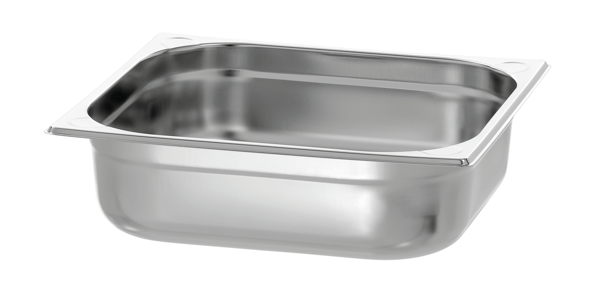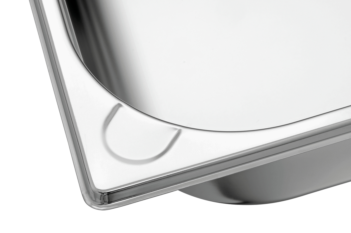 GN-Behälter nach EN 631 aus rostfreiem Chromnickelstahl mit seidenmatter Oberfläche.