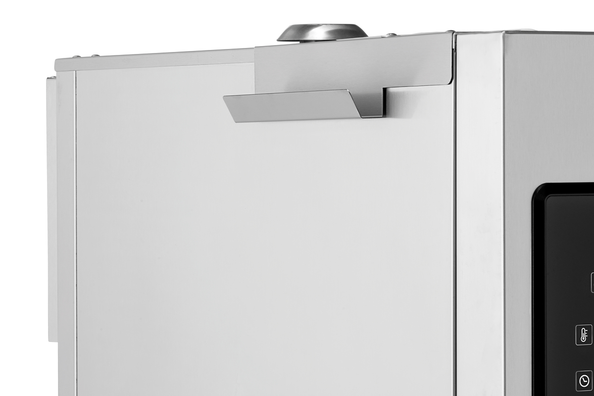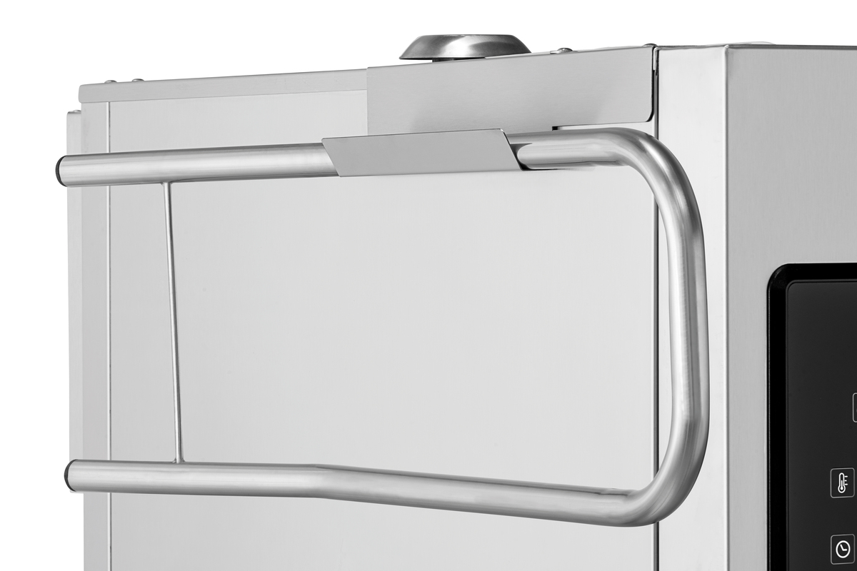 Alles muss seine Ordnung haben - denn, wenn alles an seinem Platz ist, findet sich jeder in der Küche gut zurecht und Arbeitsabläufe werden optimiert. Mit nur einem Handgriff lässt sich der Hordenwagen-Griff zum Kombidämpfer Gigasteam 20110DRS aus der Halterung entnehmen.