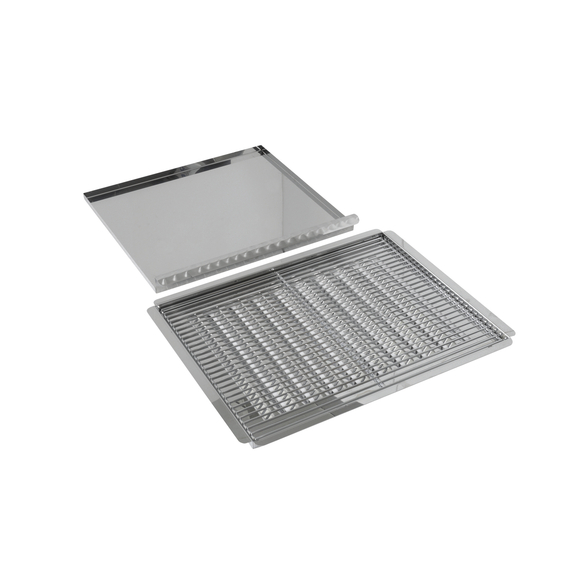 - Set bestehend aus: 1 Grillrost, Nickelstahl ,1 Flammenabdeckung, Edelstahl ,1 Fettauffangwanne, Edelstahl