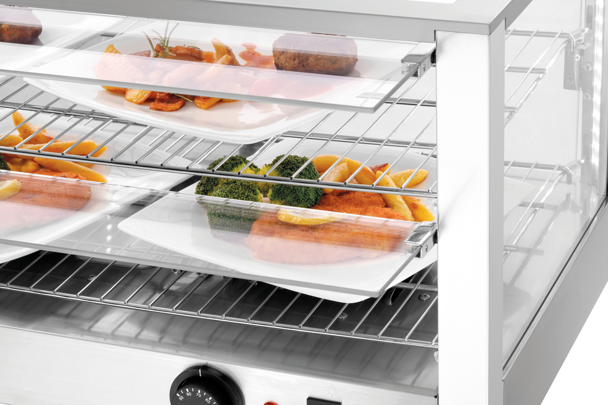 Beidseitig bedienbares Auftischgerät mit praktischen Hebetüren und LED-Beleuchtung.