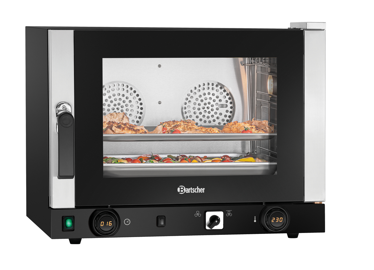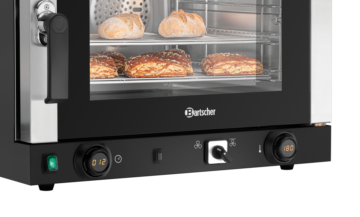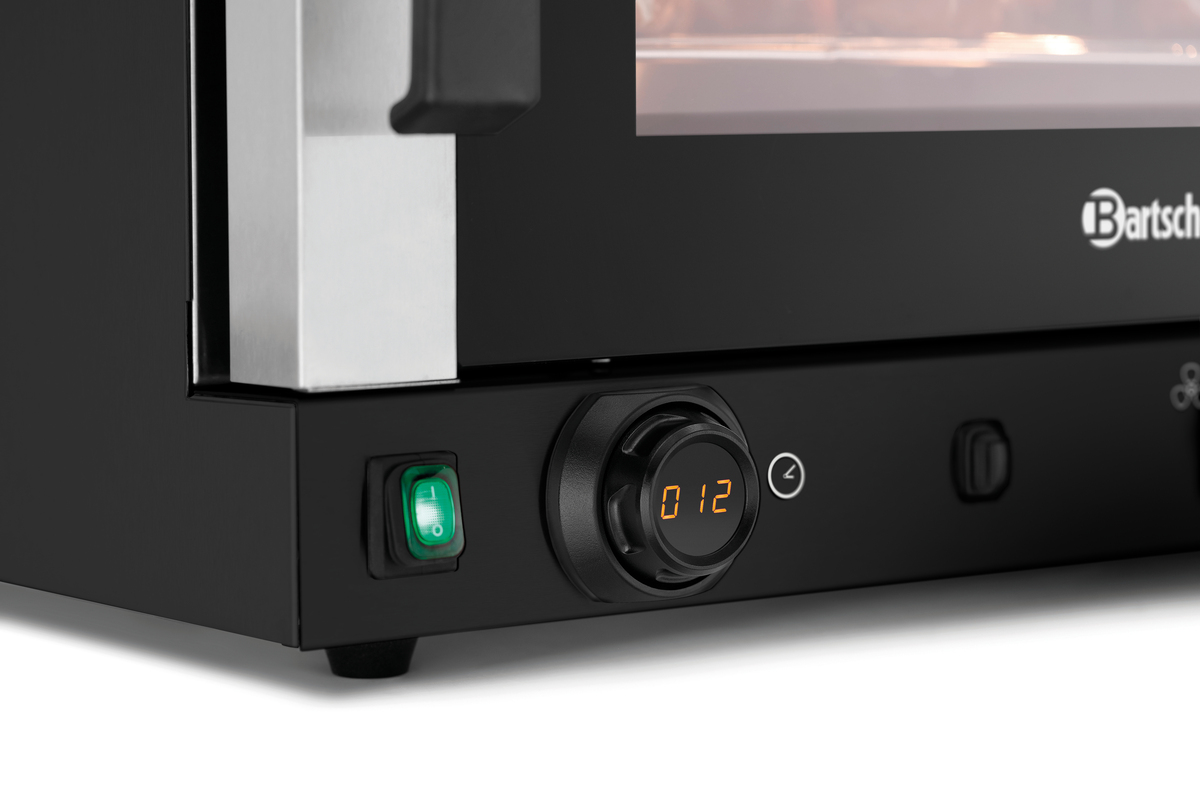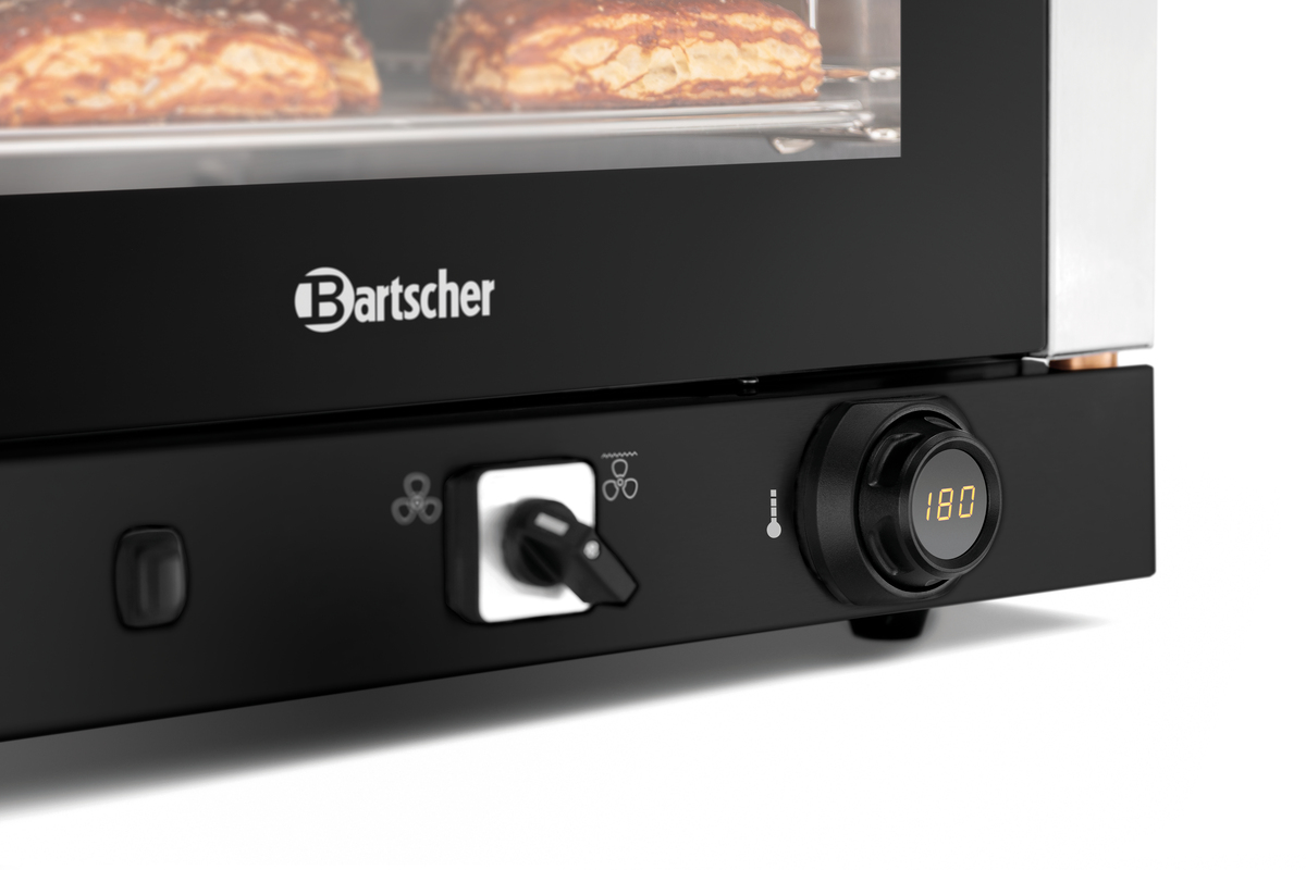 Der AT230-MDI S vereinfacht das Bestücken der Backkammer dank des seitlichen Türanschlages. Durch das Vereinen der bewährten AT Features mit der zusätzlichen Grillfunktion und Beschwadung, bleiben hier keine Wünsche offen. Für höchsten Bedienkomfort sorgt die intuitive Bartscher MDI-Steuerung mit einer schnellen und unkomplizierten Regulierung von Temperatur und Zeit.