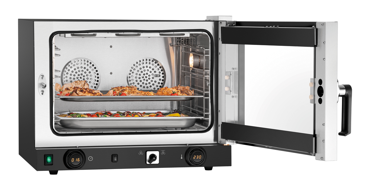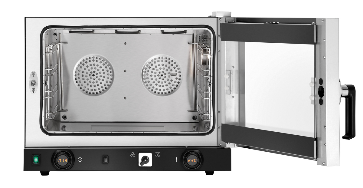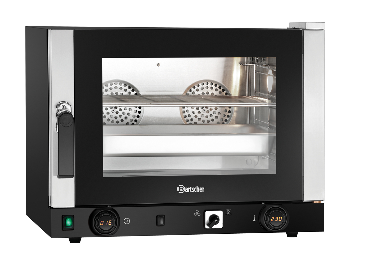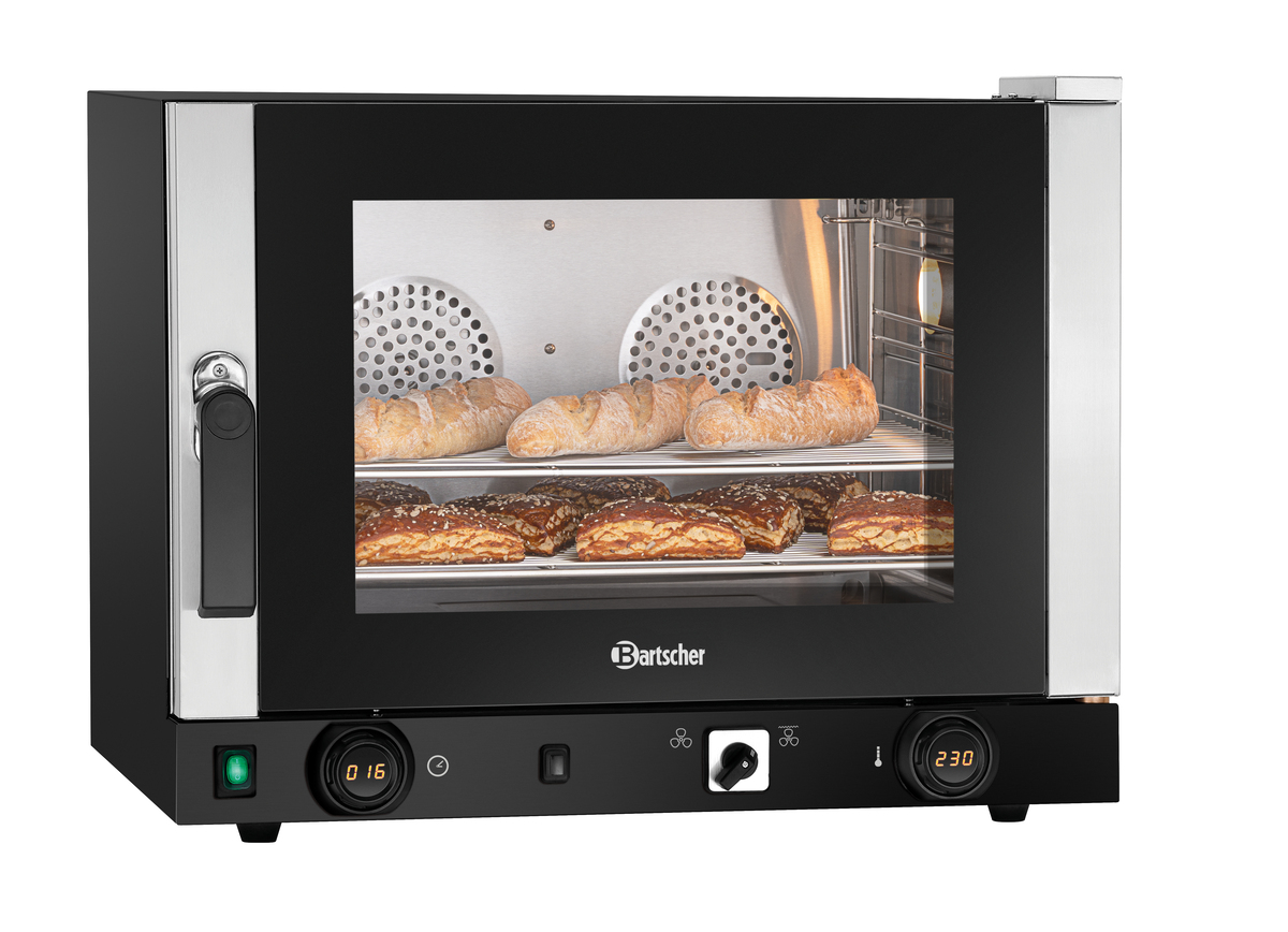 Der AT230-MDI S vereinfacht das Bestücken der Backkammer dank des seitlichen Türanschlages. Durch das Vereinen der bewährten AT Features mit der zusätzlichen Grillfunktion und Beschwadung, bleiben hier keine Wünsche offen. Für höchsten Bedienkomfort sorgt die intuitive Bartscher MDI-Steuerung mit einer schnellen und unkomplizierten Regulierung von Temperatur und Zeit.