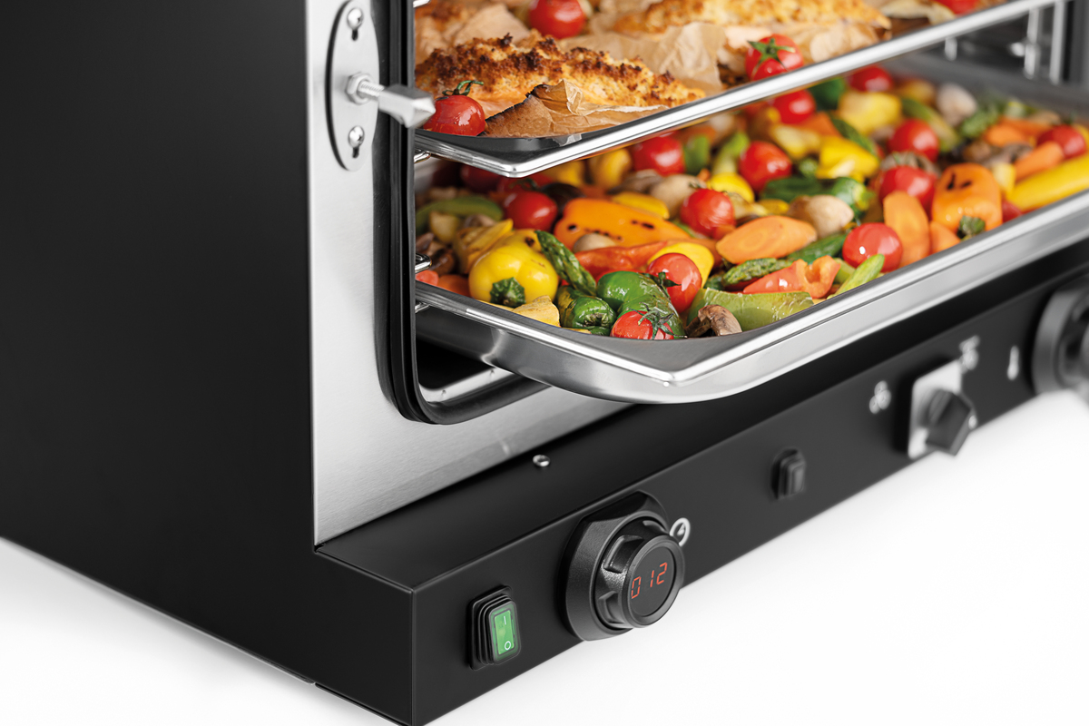 - Eigenschaften: Abgerundete Backkammer ,Auflageschienen herausnehmbar ,Doppeltürverglasung ,Einfaches Bestücken durch seitlichen Türanschlag ,Knebel mit Digital-Anzeige für Temperatur und Zeit ,Memory-Funktion ,Mögliche Pausierung des Garprozesses über Temperaturregler ,Signalton nach Ablauf der Zeit (1 - 120 Minuten)