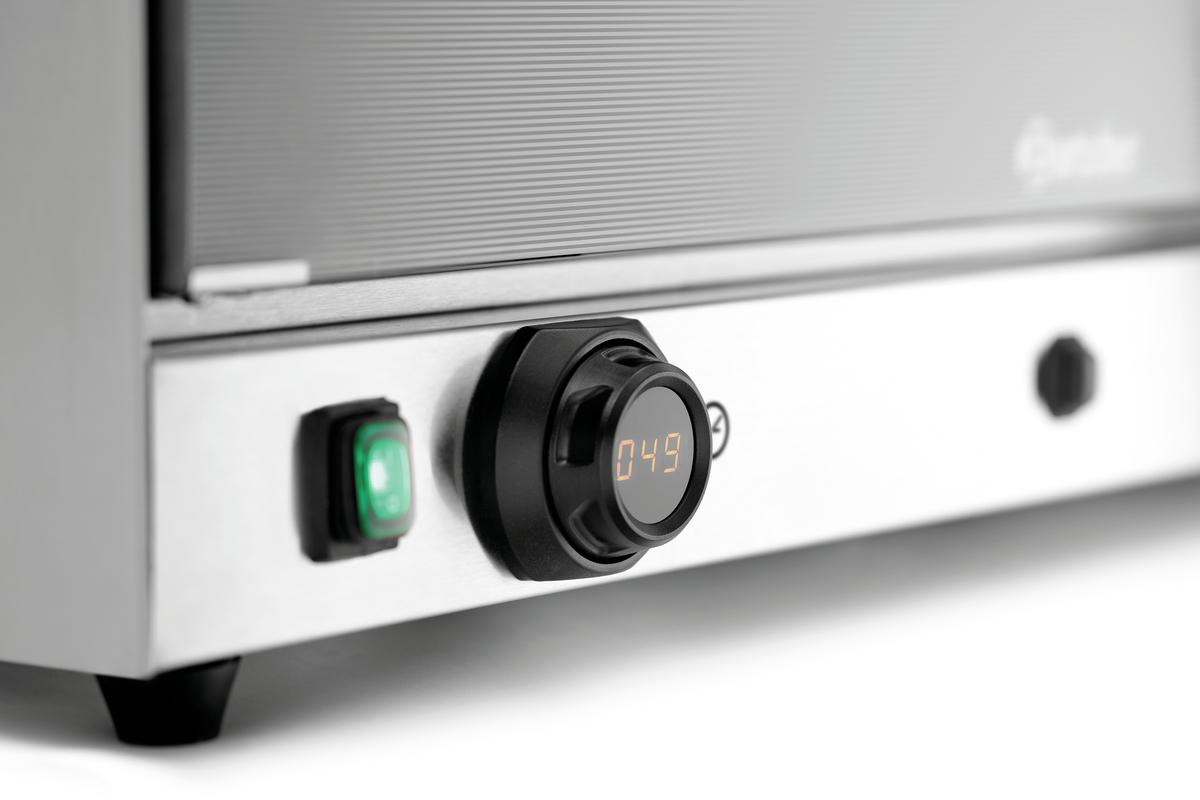- Eigenschaften: Abgerundete Backkammer ,Auflageschienen herausnehmbar ,Doppeltürverglasung ,Knebel mit Digital-Anzeige für Temperatur und Zeit ,Memory-Funktion ,Mögliche Pausierung des Garprozesses über Temperaturregler ,Signalton nach Ablauf der Zeit (1 - 120 Minuten)