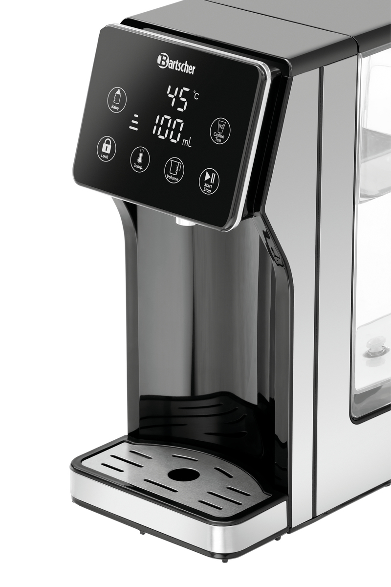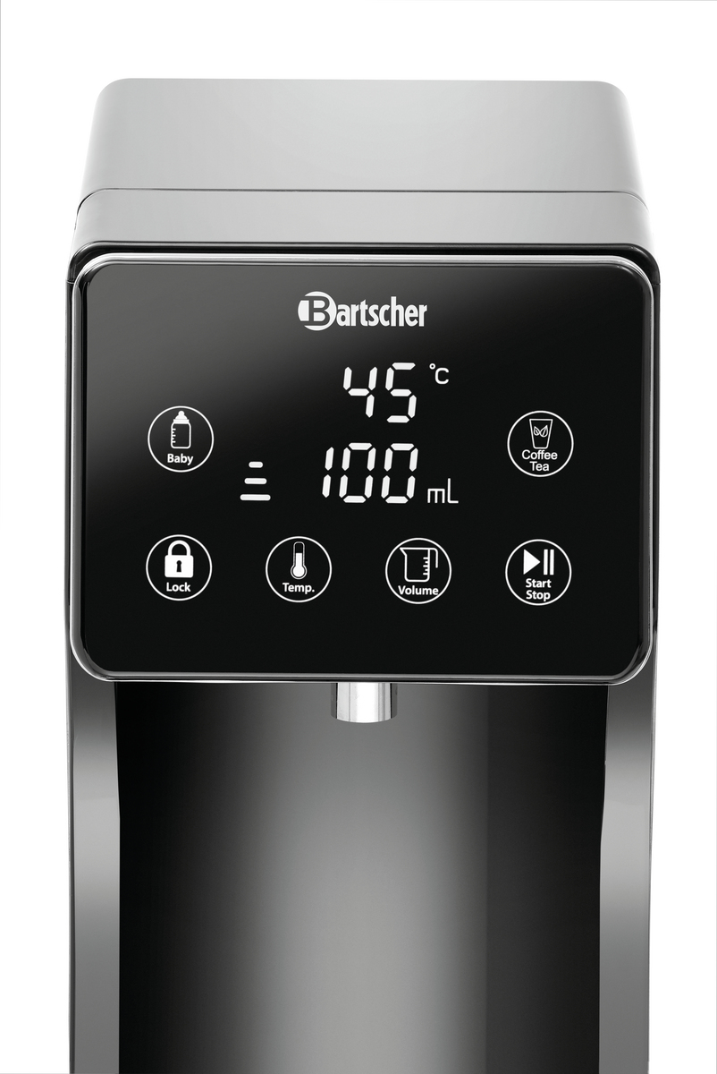 - Eigenschaften: kontinuierlicher Durchfluss einstellbar für variable Mengen ,Schnellwahltaste „Babynahrung“ mit 40 °C ,Schnellwahltaste „Kaffee/Tee“ mit 98 °C ,Wassermenge individuell einstellbar in 100 ml-Schritten bis 400 ml