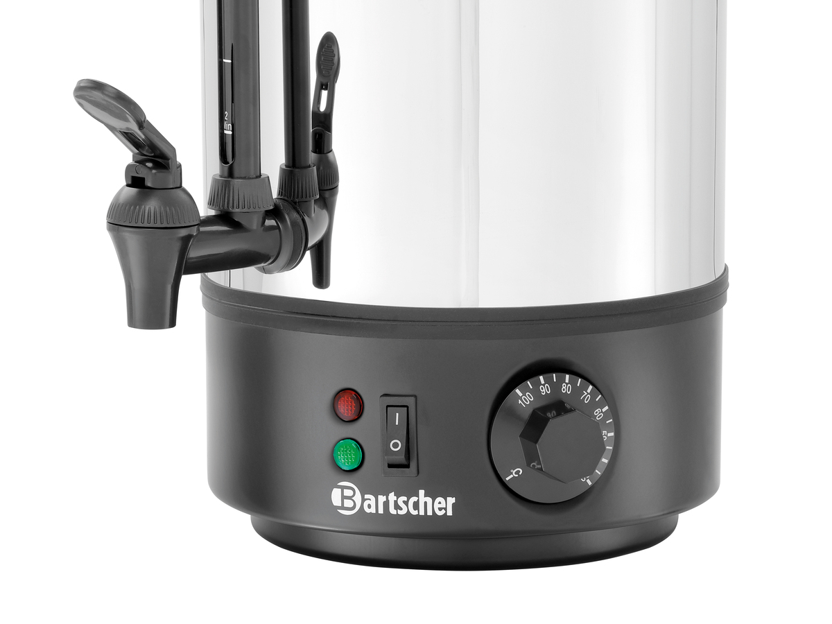 Mit dem Heißwasser-Spender lassen sich 10 Liter Wasser stufenlos erhitzen und warmhalten. Ideal für den Einsatz im Selbstbedienungsbereich, bei Events oder im Outdoor-Bereich.