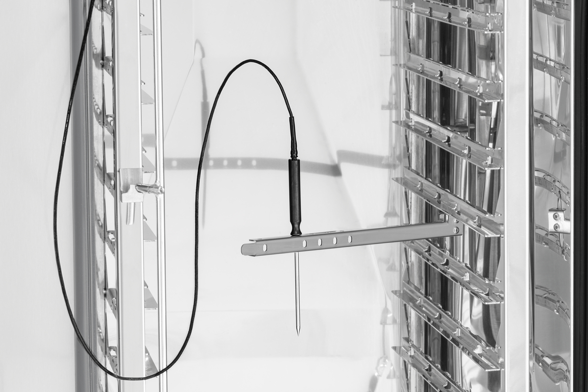 - Ausstattung: Je eine Behältersicherung an Vorder- und Rückseite ,Mit Kerntemperaturfühler-Halterung