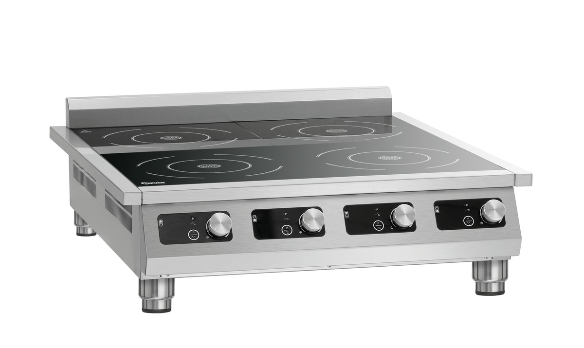 Ob im Frontcooking-Bereich oder als Ergänzung in der Küche - der Induktionskocher 4P 50-1 TCK überzeugt als Auftischgerät mit eleganter Optik und einer Gesamtleistung von 20 kW. Ausgestattet mit vier großen Kochstellen für Topfdurchmesser bis 280 mm und Wechselmöglichkeit zwischen Leistungsstufen und Temperatur ist er ein zuverlässiger Begleiter um Spitzen abzufangen.