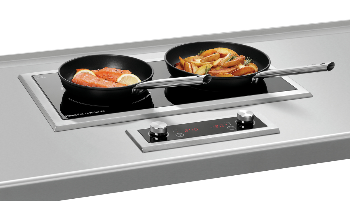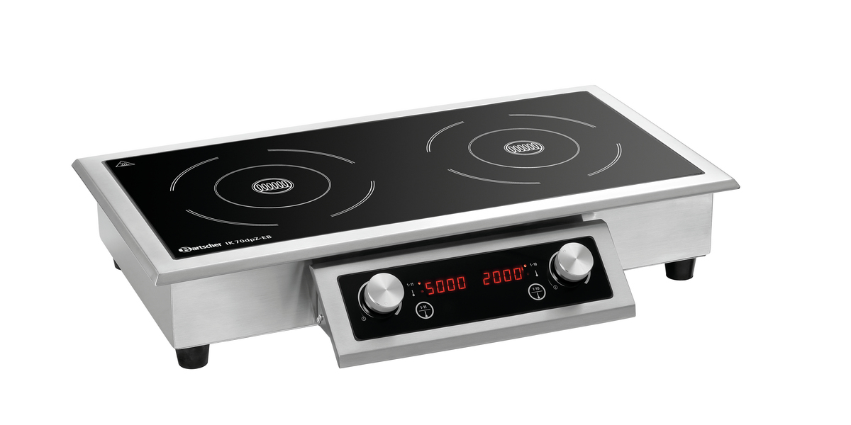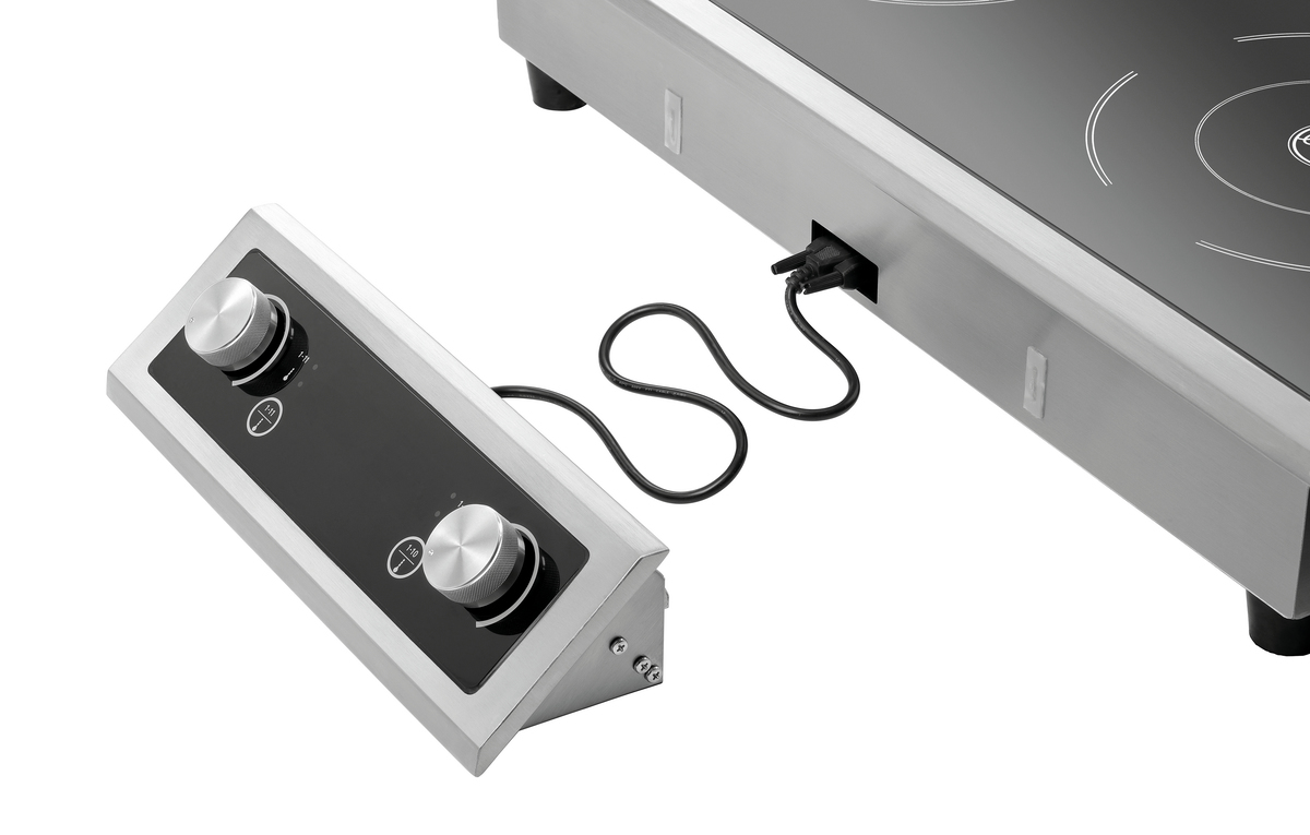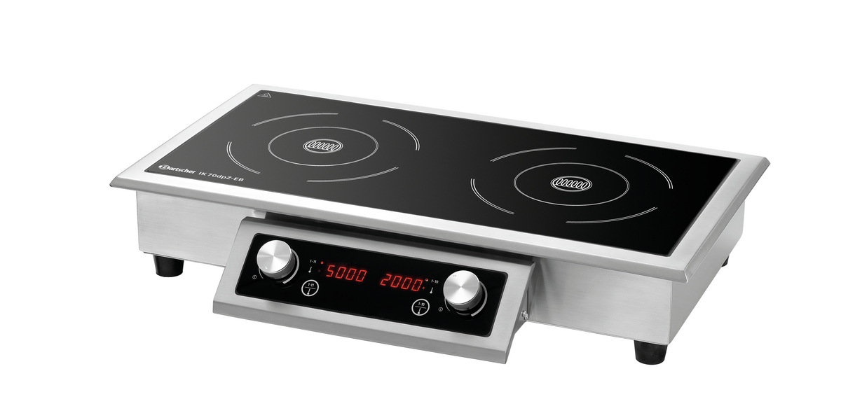 Mehr Flexibilität geht nicht: Der Induktionskocher mit abnehmbarem Bedienfeld ist sowohl als Auftischgerät als auch zum Einbau am Buffet geeignet. Die 7000 Watt können ganz nach Bedarf auf die beiden Kochstellen verteilt werden - für ein schnelles Garen oder scharfes Anbraten erreicht die linke Kochstelle bis zu 5000 Watt.