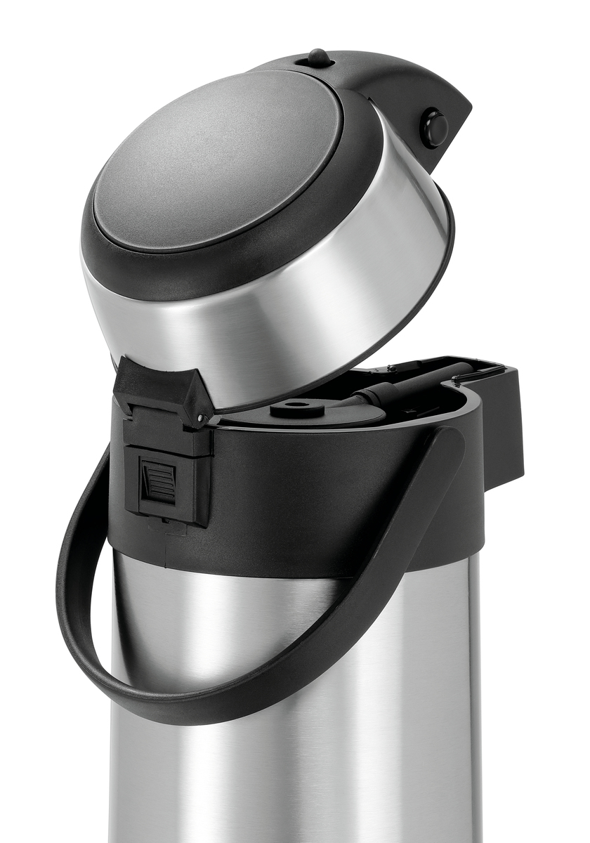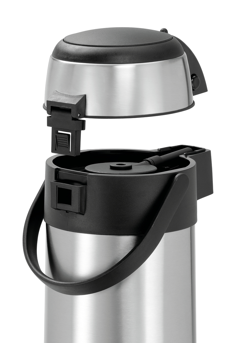 Doppelwandige, drehbare Isolierkanne mit Tragegriff für eine praktische Bevorratung von bis zu 3 Litern Heißgetränken. Das Pumpsystem ermöglicht eine einfache und bedarfsgerechte Dosierung.