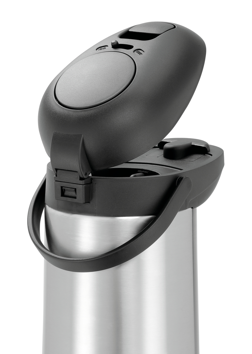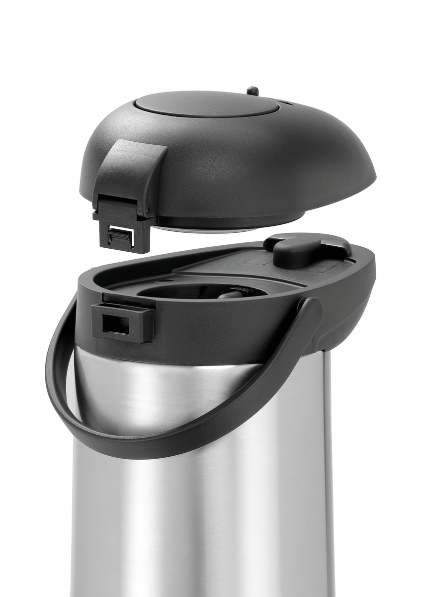 - Eigenschaften: Boden mit integriertem Ring für eine 360°-Drehung der Kanne ,Verriegelungssystem ,Deckel mit Ausgießmechanik ,Pumpkopf komplett abnehmbar ,Einfache Reinigung