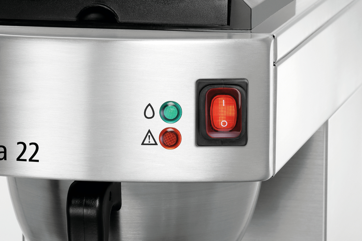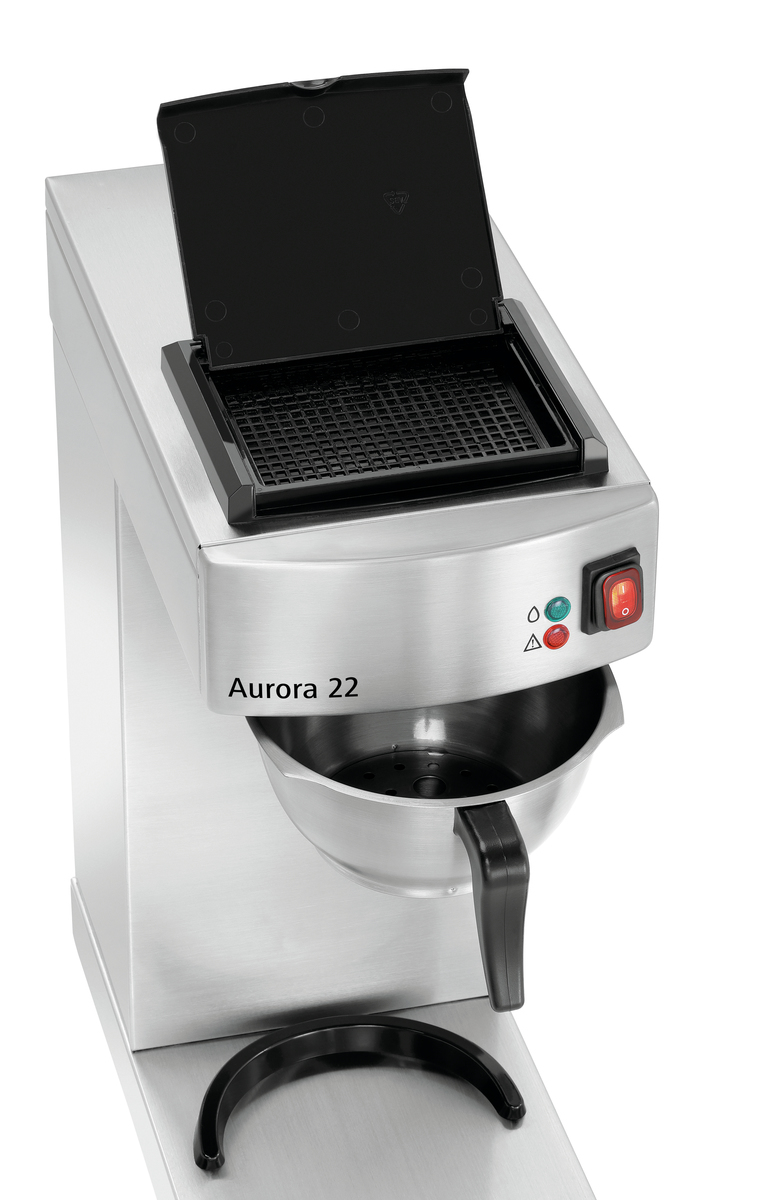 Die Edelstahl-Isolierpumpkanne der Aurora 22 fasst bis zu 1,9 Liter Kaffee - In 8 Minuten frisch aufgebrüht. Für eine optimale Wärmeübertragung sorgt das Heizelement aus Edelstahl. Die praktische Kanne mit Pumpsystem ermöglicht ein einfaches Handling im Self-Service-Bereich.