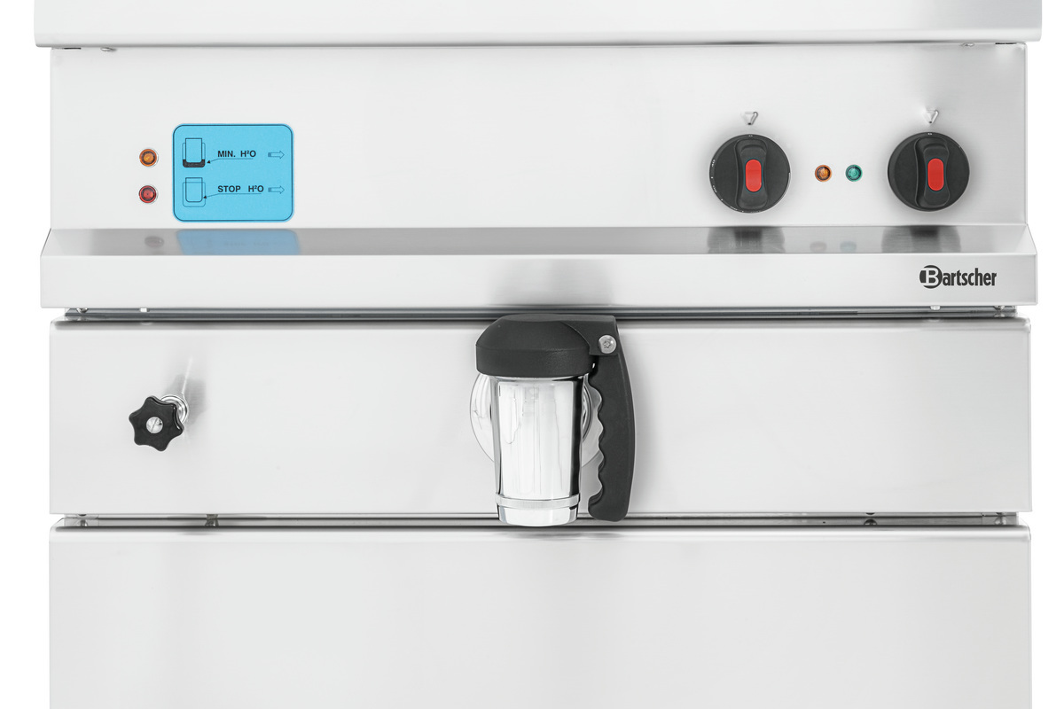 - Eigenschaften: Automatische Wasserstandskontrolle im Zwischenmantel ,Bei Störung automatische Abschaltung ,Drucküberwachung: Trichterarmaturen mit Sicherheitsventil (auf 0,5 bar kalibriert) ,Elektrobeheizung durch gussgekapselte "Incoloy 800" Widerstände aus Speziallegierung ,Mischbatterie für Kalt- und Warmwasser ,Inklusive: Ablaufsieb