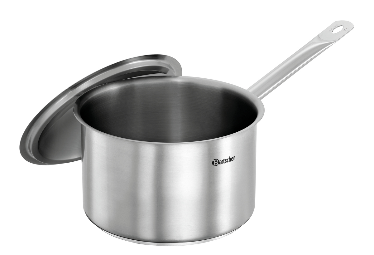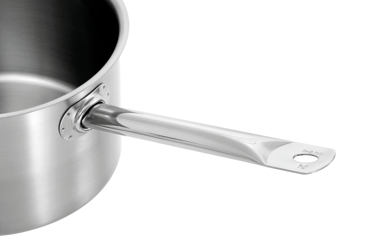 Der Kochtopf aus Edelstahl ist ein Allrounder auf allen Herdarten. Mit dem fest angebrachten langen Griff garantiert er ein optimales Handling in der Küche.