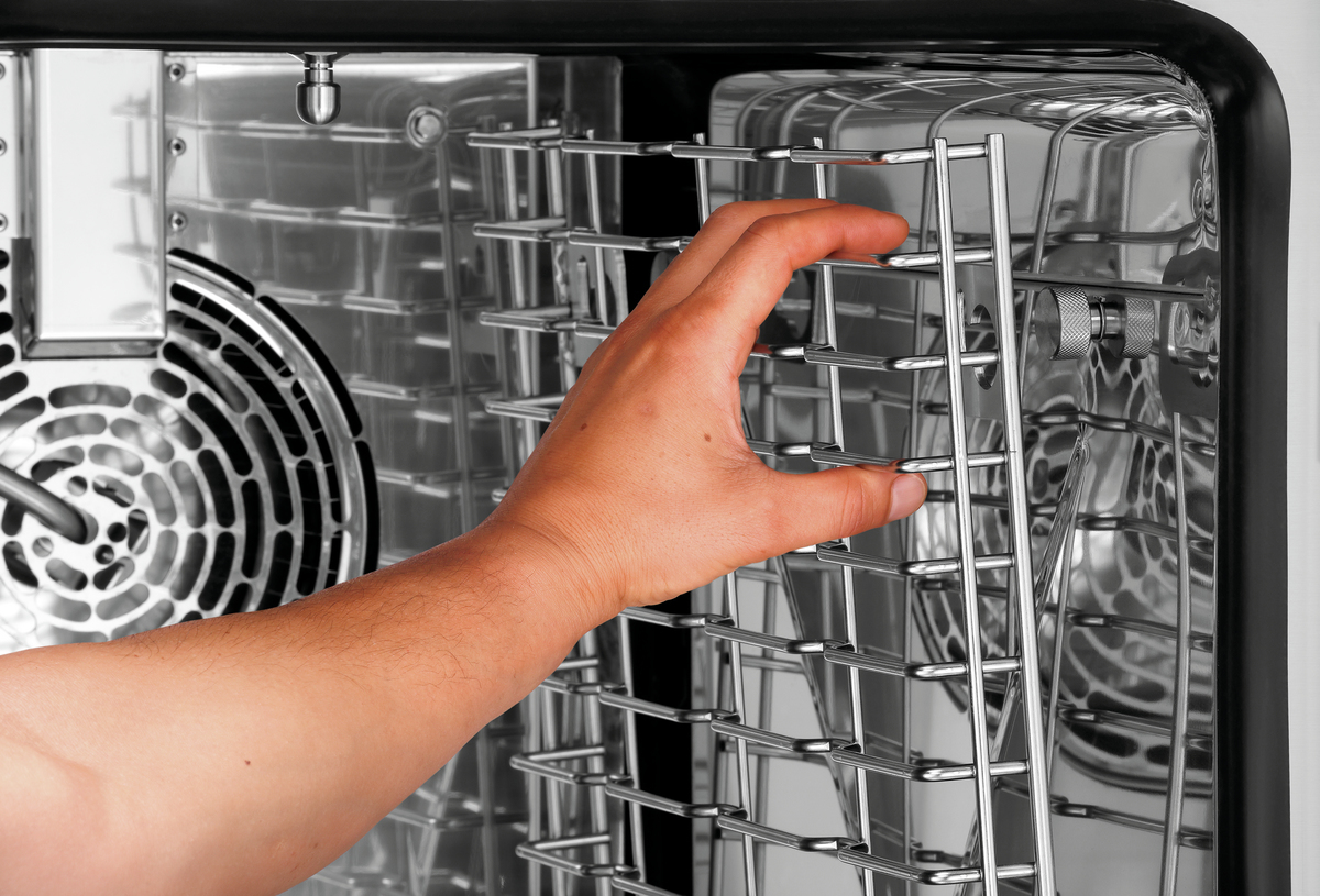 Dank des Längseinschubs ist der Silversteam-K 6110DRS besonders kompakt und findet so in der kleinsten Küche seinen Platz. Bei intuitiver, digitaler Bedienung mit Rack-Control-Funktion und guter Luftzirkulation lassen sich Speisen auf GN-Behälter im 1/1 GN-Format dämpfen, garen oder backen. Für einen blitzblanken Garraum sorgt das integrierte Reinigungssystem.