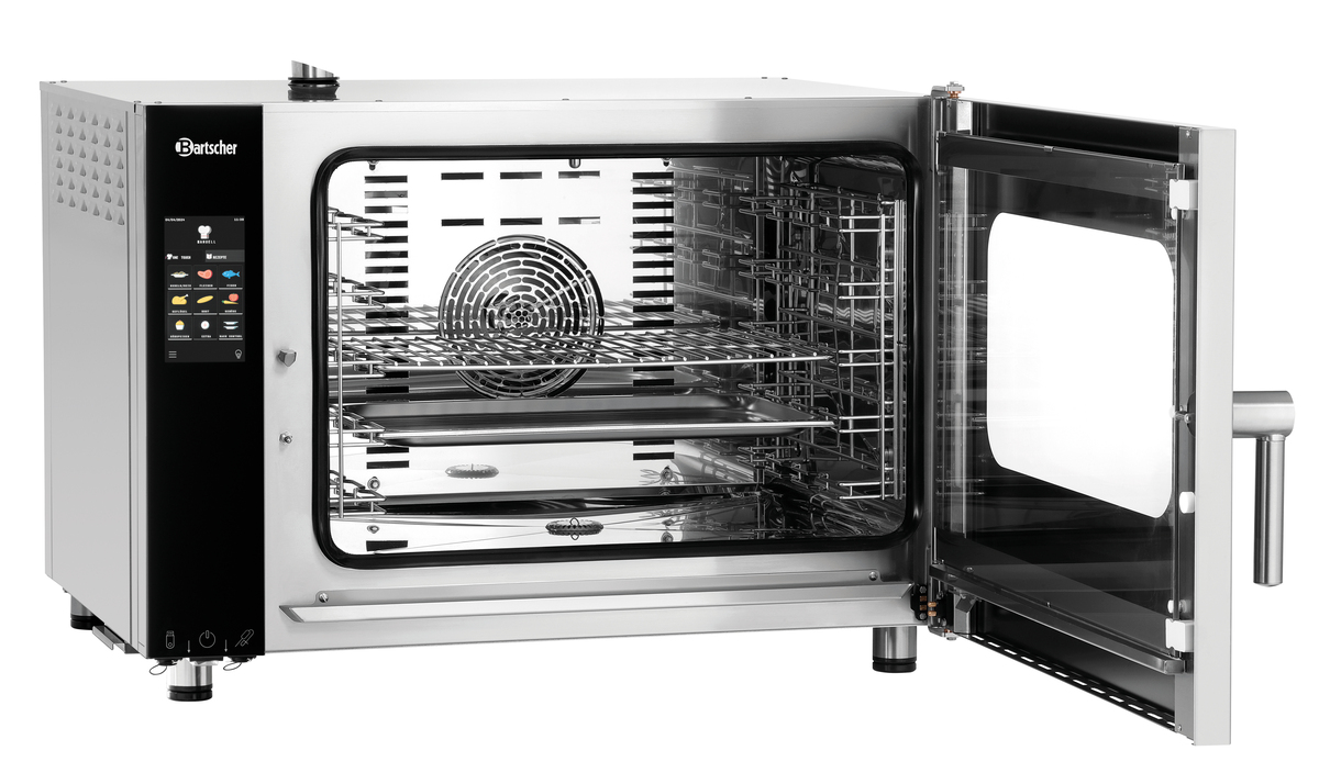 Der ideale Partner in jeder Küche: Bartscher Kombidämpfer mit 5 Einschüben im 1/1 GN Format. Ob mit oder ohne Kerntemperaturfühler - die elektronische Bedienung ermöglicht eine bedarfsgerechte Steuerung aller Garvorgänge. Mit der Rack-Control-Funktion können verschiedene Speisen zu unterschiedlichen Zeiten zubereitet werden. Eine Erleichterung, bei der der Silversteam2 alles für Sie im Blick hat.