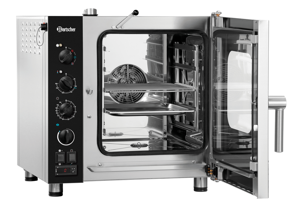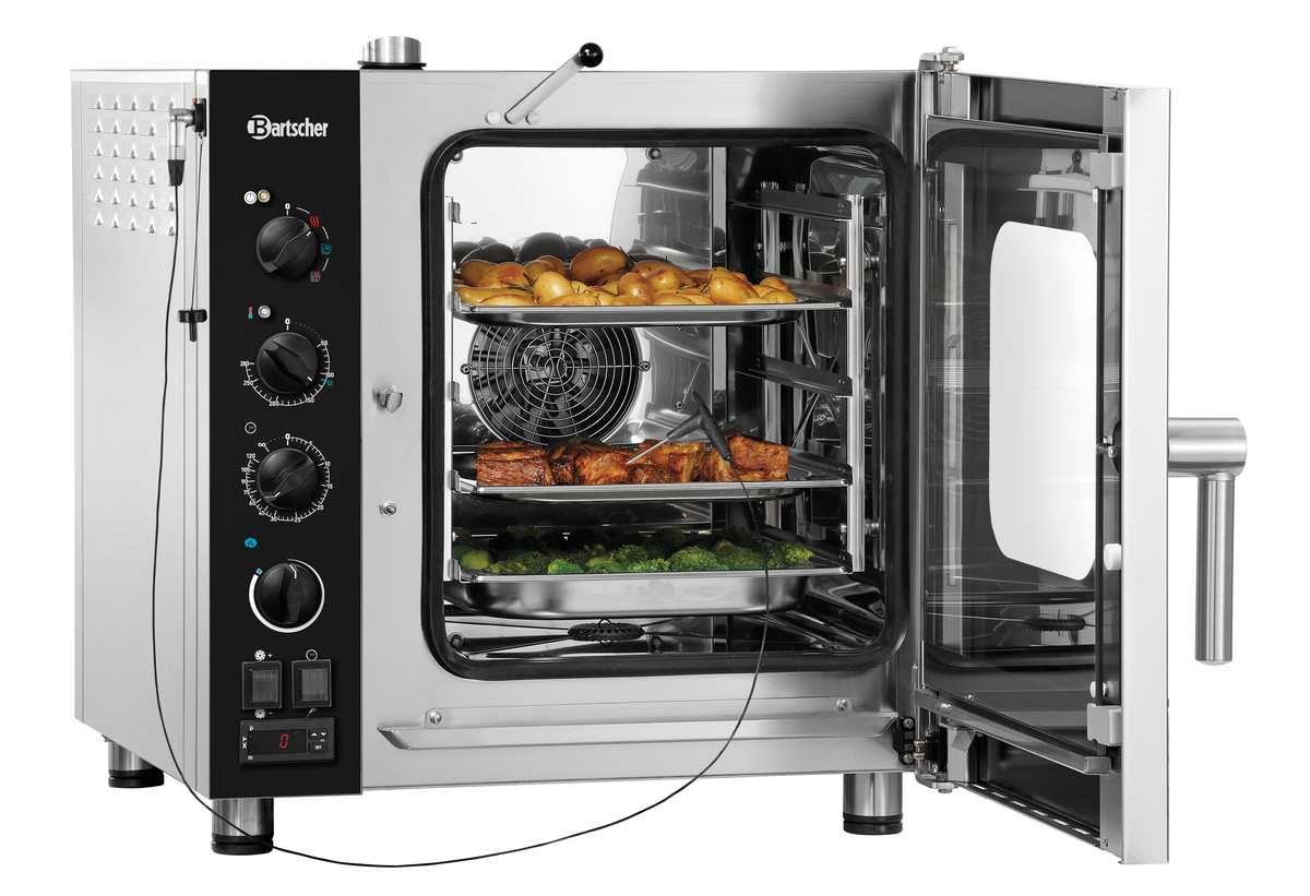 Der ideale Partner in jeder Küche: Bartscher Kombidämpfer der Serie Silversteam2 mit 5 Einschüben im 2/3 GN Format. Ob Umluftgaren, Dampfgaren, Kombidämpfen oder Niedertemperaturgaren - die manuelle Bedienung ermöglicht eine unkomplizierte, bedarfsgerechte Steuerung aller Garvorgänge - wahlweise mit oder ohne Kerntemperaturfühler.