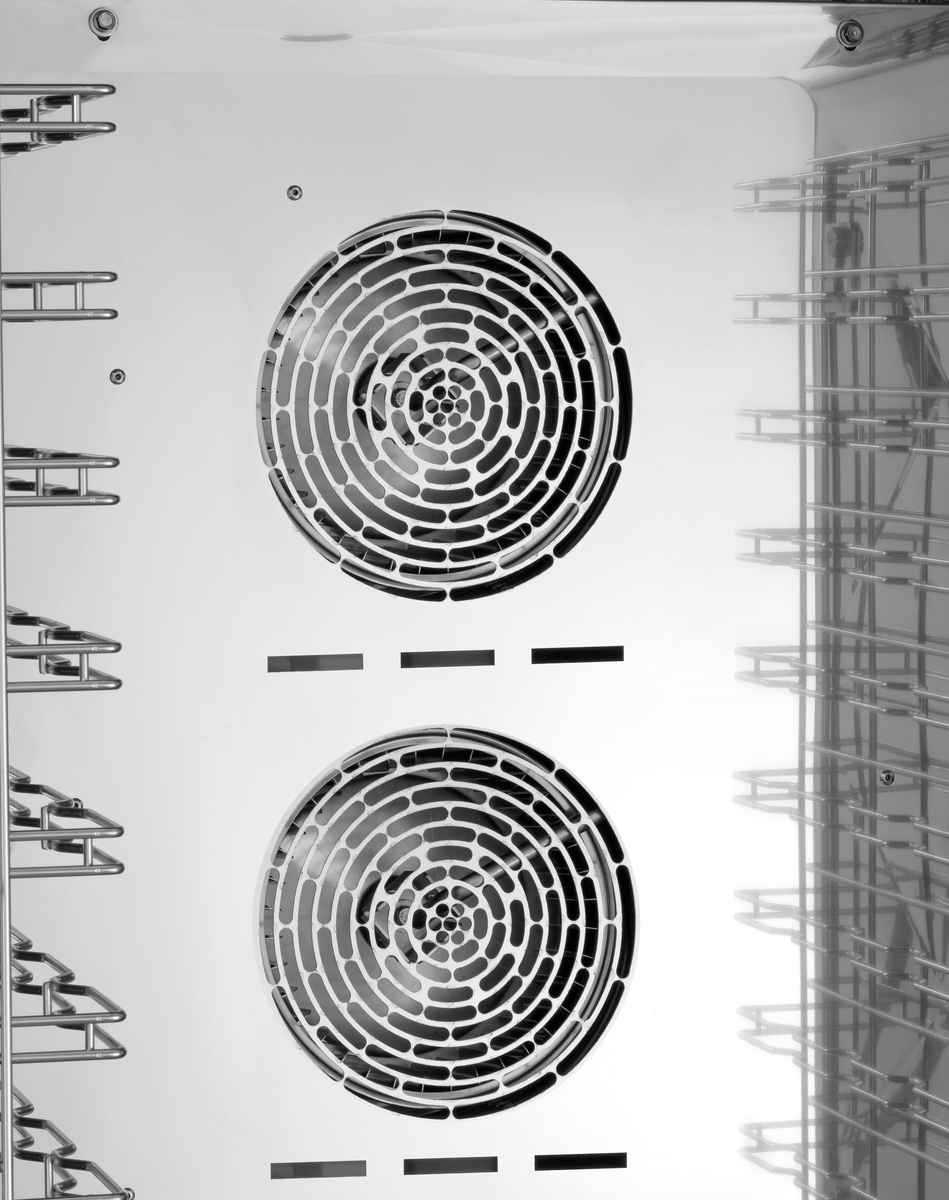 - Funktionen: Automatisches 3-stufiges Reinigungssystem mit Trocknungsprogramm ,Dampferzeugung durch Direkteinspritzung ,Dämpfen ,Delta-T-Garen ,Kombidämpfen ,Niedertemperaturgaren ,Reversierender Motorlauf (Lüfterräder) ,Umluft ,Cooldown in Garphase ,Manuelle Beschwadung