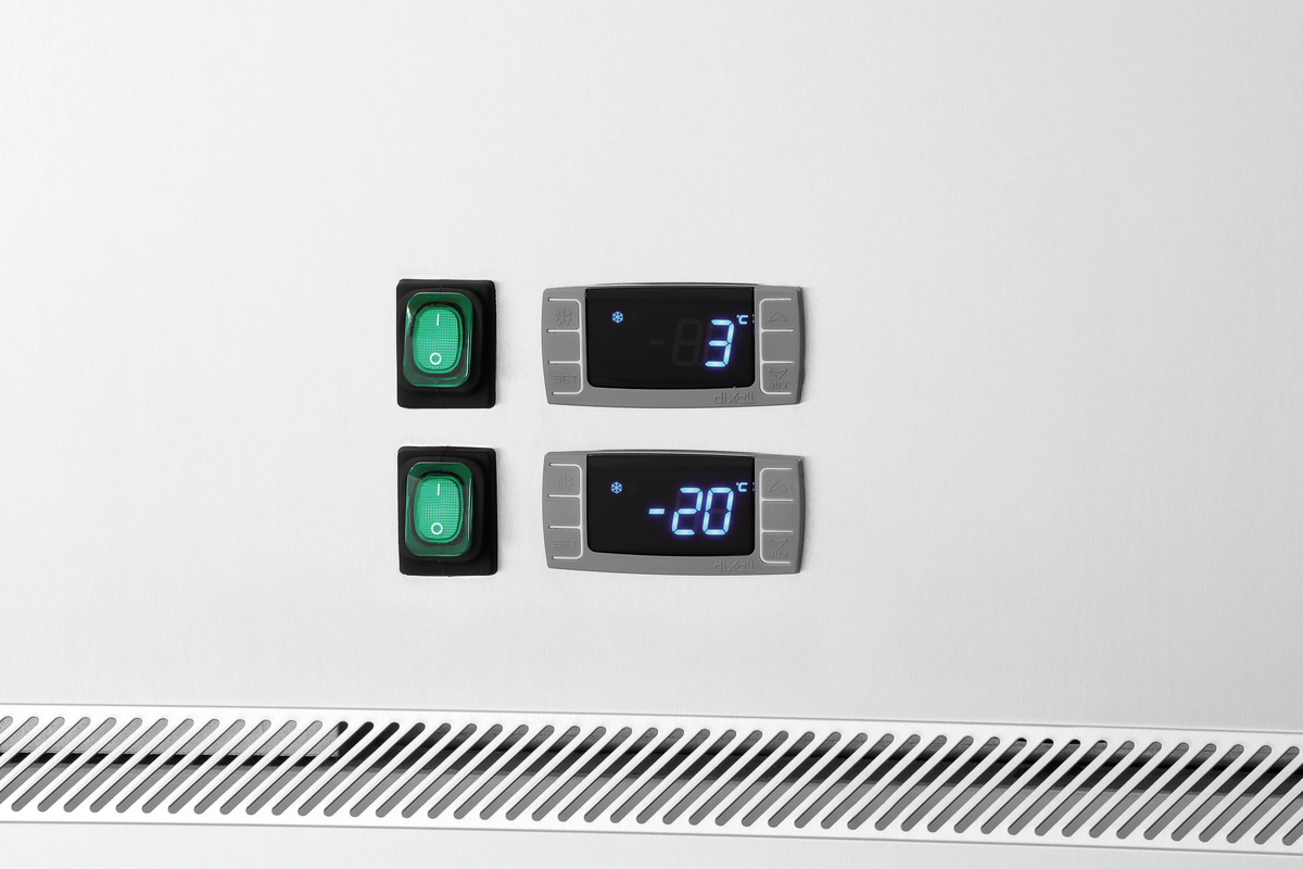- Eigenschaften: 4 Lenkrollen, 2 feststellbar ,auch für den Einschub von GN-Behältern ,Je 1 Ein-/Ausschalter für Kühlung und Tiefkühlung ,oben Kühlung | unten Tiefkühlung