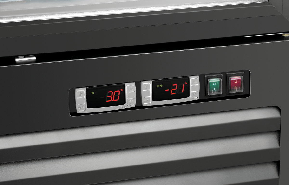 - Eigenschaften: links Kühlung | rechts Tiefkühlung ,4 Lenkrollen, 2 feststellbar ,LED-Beleuchtung, separat schaltbar ,Heizvorrichtung zur Vermeidung von Kondensation