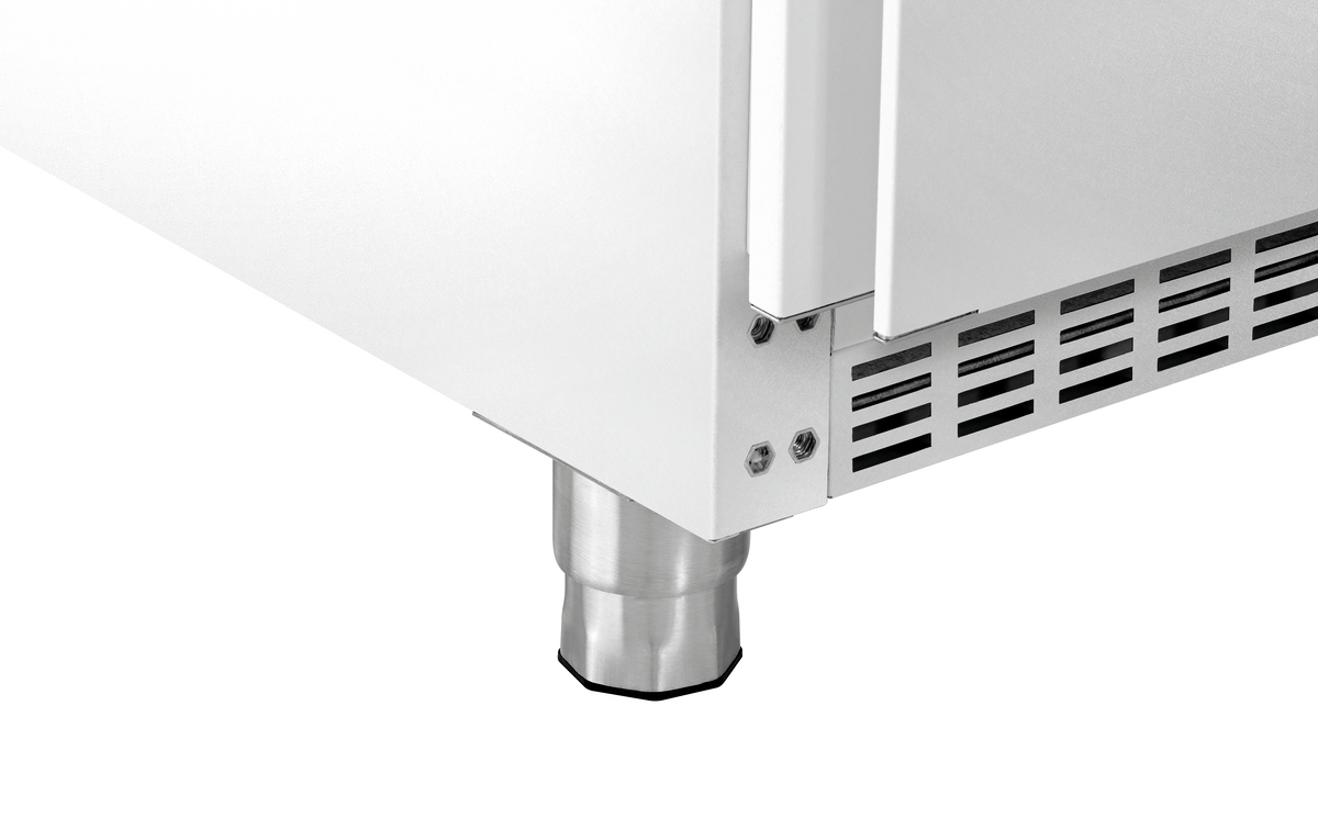 Der abschließbare Kühlschrank ist mit seiner leicht strukturierten Oberfläche ein besonderer Hingucker in jeder Gastronomie-Küche. Mit 5 höhenverstellbaren Rosten kann der Innenraum ganz nach Bedarf bestückt werden. Die optimale Kühltemperatur lässt sich in 0,1 °C-Schritten einfach und intuitiv über das Display einstellen.