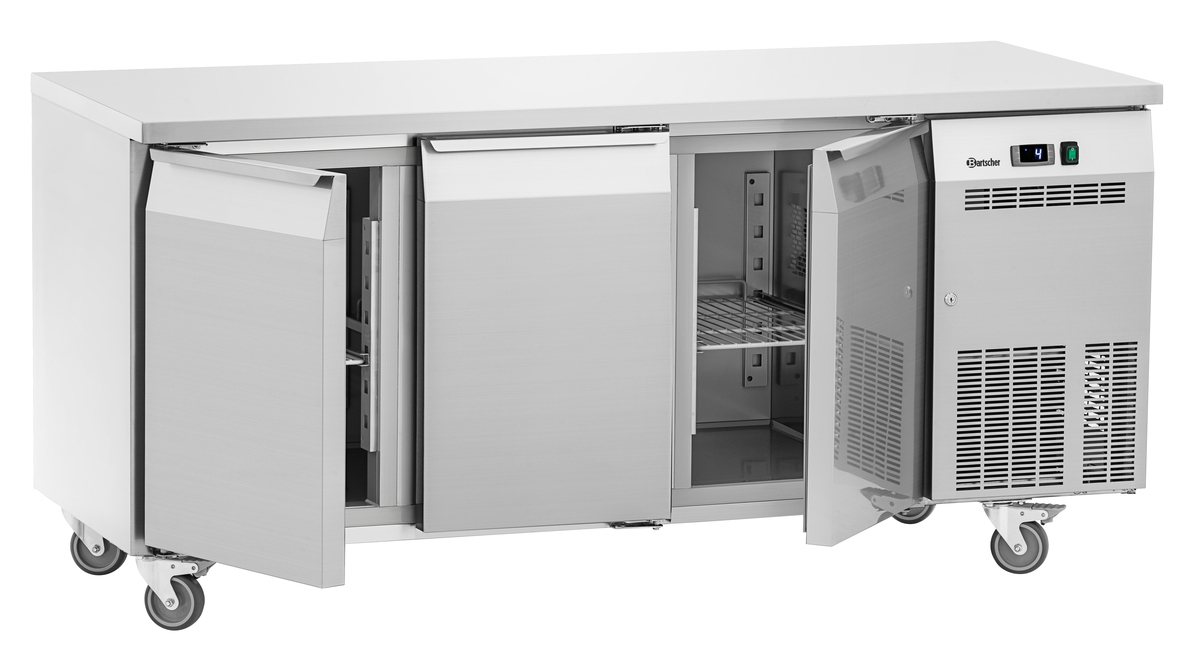 Der Kühltisch mit 3 Türen gewährleistet durch die Umluftkühlung eine gleichmäßige und konstante Kühltemperatur im gesamten Innenraum. Die robuste Edelstahloberfläche fügt sich nahtlos in jede Küche ein und kann zugleich als praktische Arbeitsfläche genutzt werden. Dank Klimaklasse 5 ist dieser Kühltisch auch für besonders warme Umgebungen geeignet.
